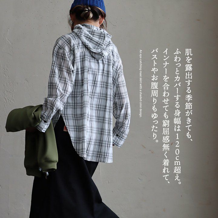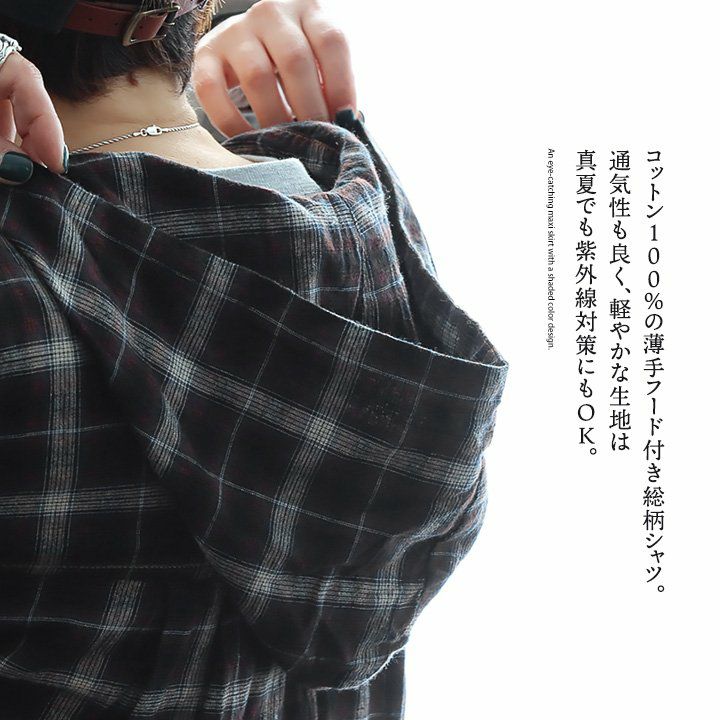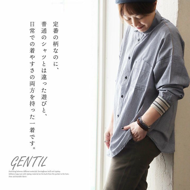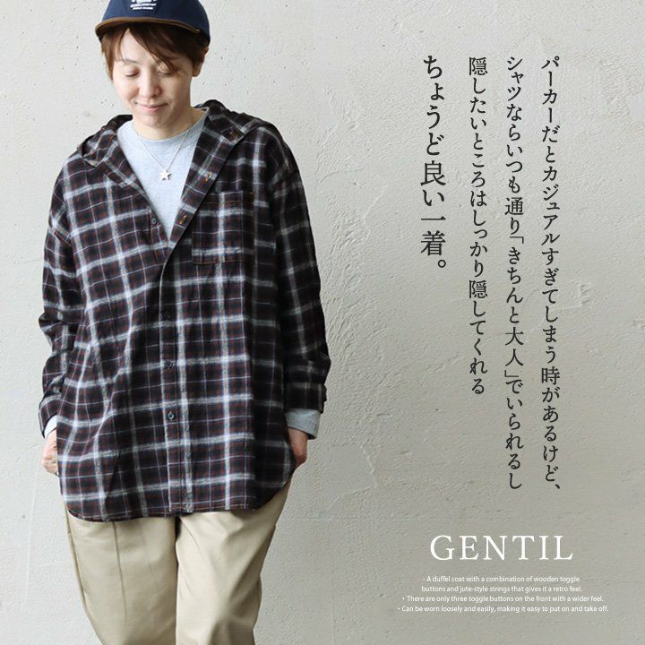 「きちんと大人」でいられるちょうど良い一着。 シャツ シャツパーカー パーカー 長袖 レディース お尻隠れる 着痩せ チェック ストライプ 綿100% コットン 薄手 軽い 体型カバー 重ね着 カジュアル パティ GENTIL ジャンティ
