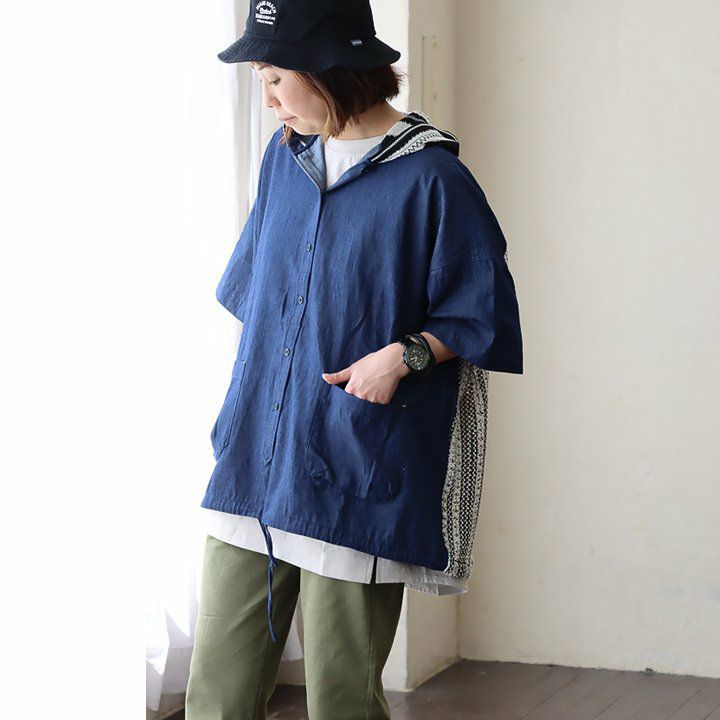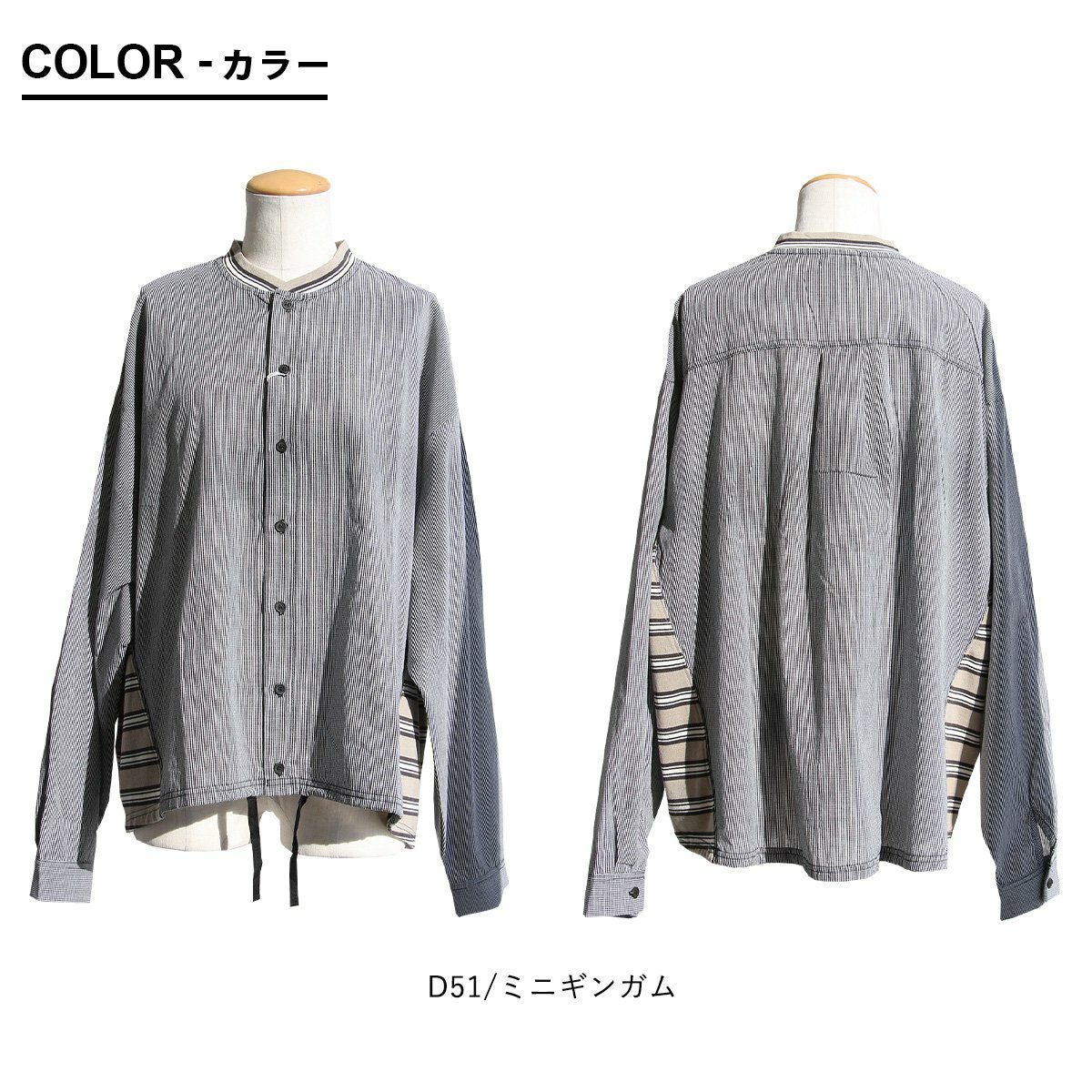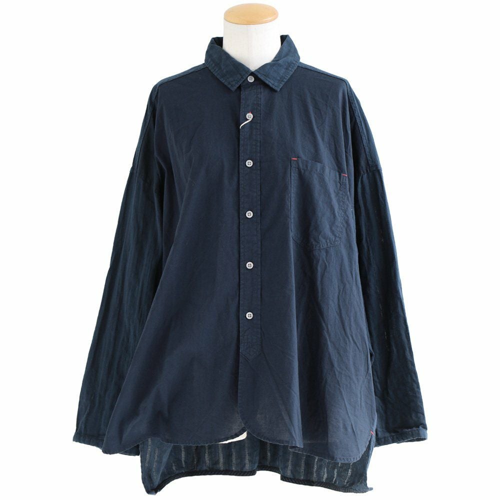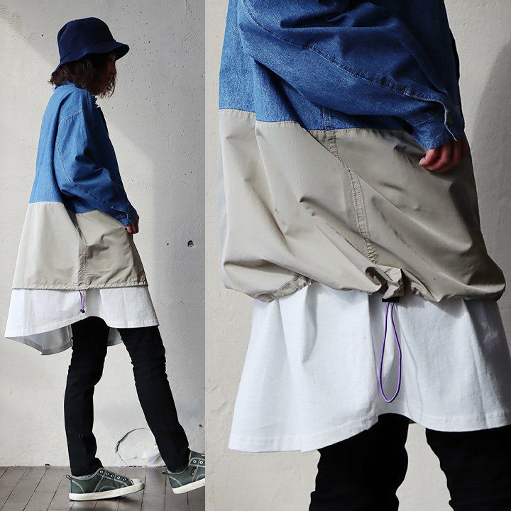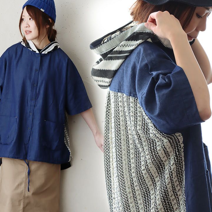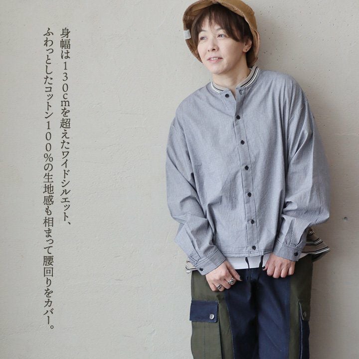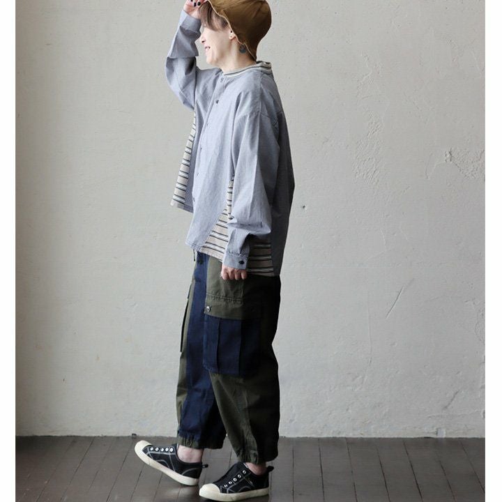 メンズライクがお好きなら、たまには「変わり種」も。 シャ ツデニムシャツ レディース ノーカラー 異素材切り替え コットン100% 綿 配色 フリンジ 大きいサイズ ゆったり 体型カバー カジュアル メンズライク PATY パティ GENTIL ジャンティ