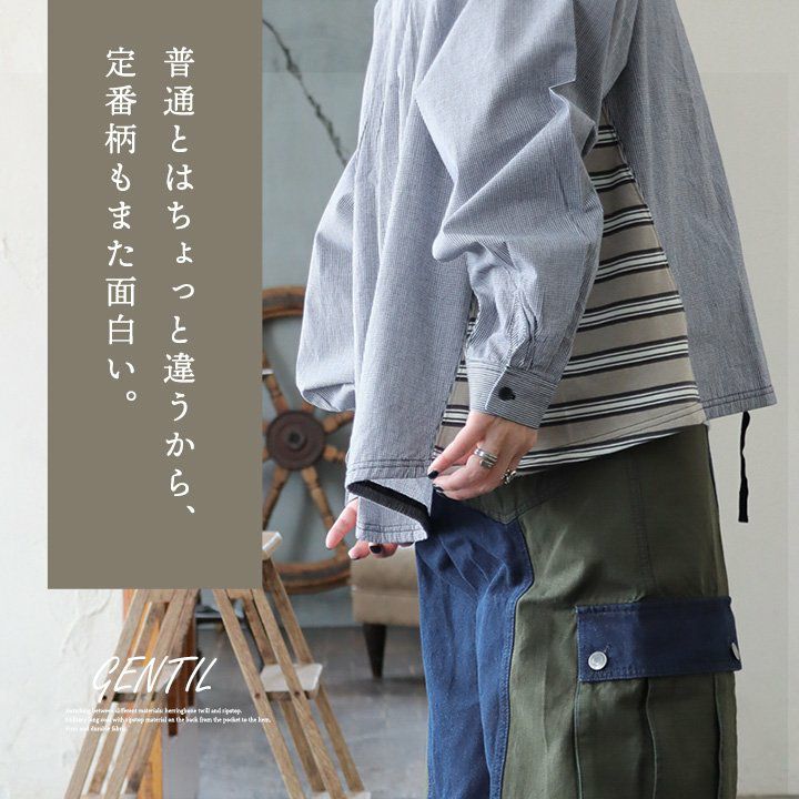 普通とはちょっと違うから、定番柄もまた面白い。 シャツ プルオーバー 長袖 レディース お尻隠れる ギンガムチェック ボーダー 配色切り替え コットン 綿100 ゆったり 大きいサイズ 体型カバー カジュアル PATY パティ GENTIL ジャンティ