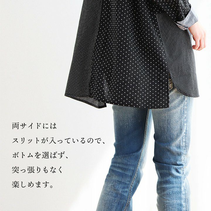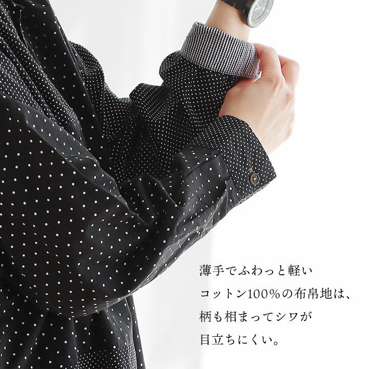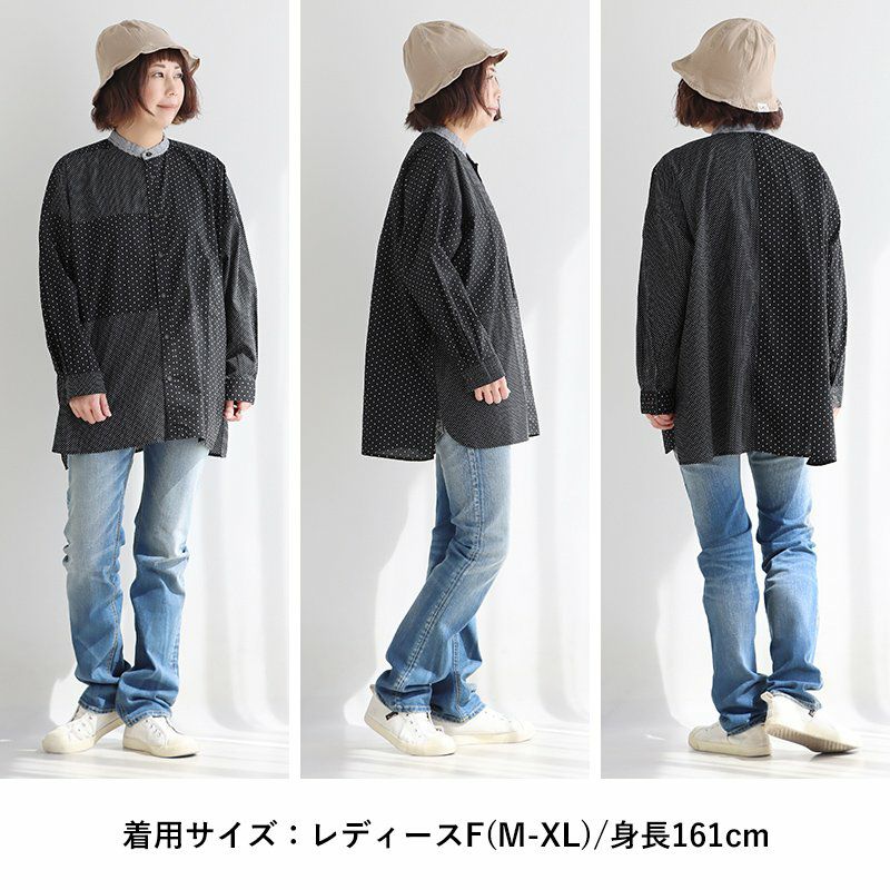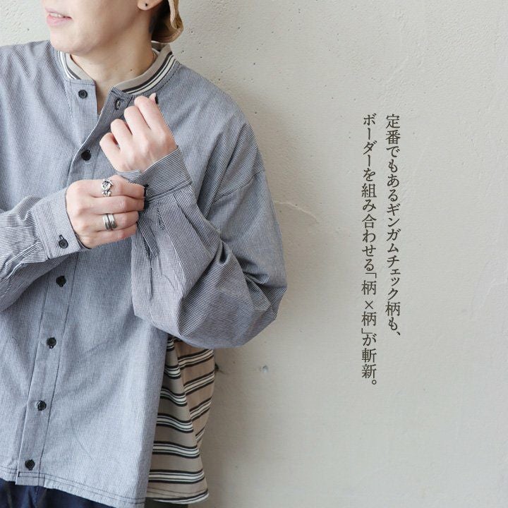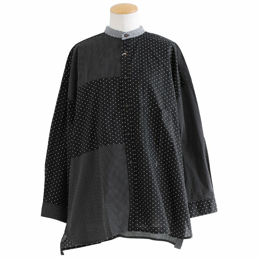 大人感と遊びのバランスセンスが光る、クレイジーシャツ。 シャツ 長袖 レディース バンドカラー ドット柄 パッチワーク ギンガムチェック 綿100% コットン 薄手 軽い 大きいサイズ ゆったり 体型カバー カジュアル 春 夏 パティ GENTIL ジャンティ