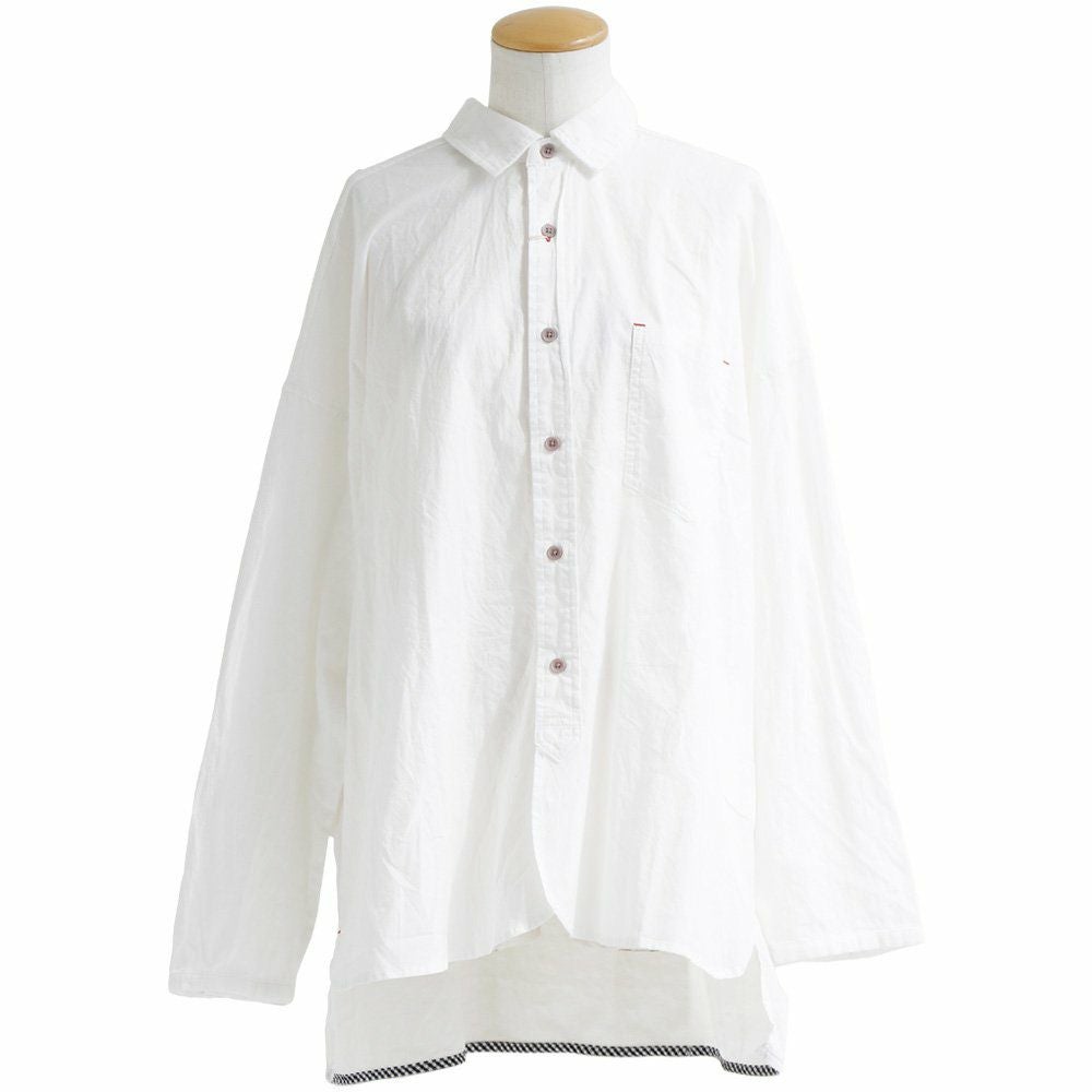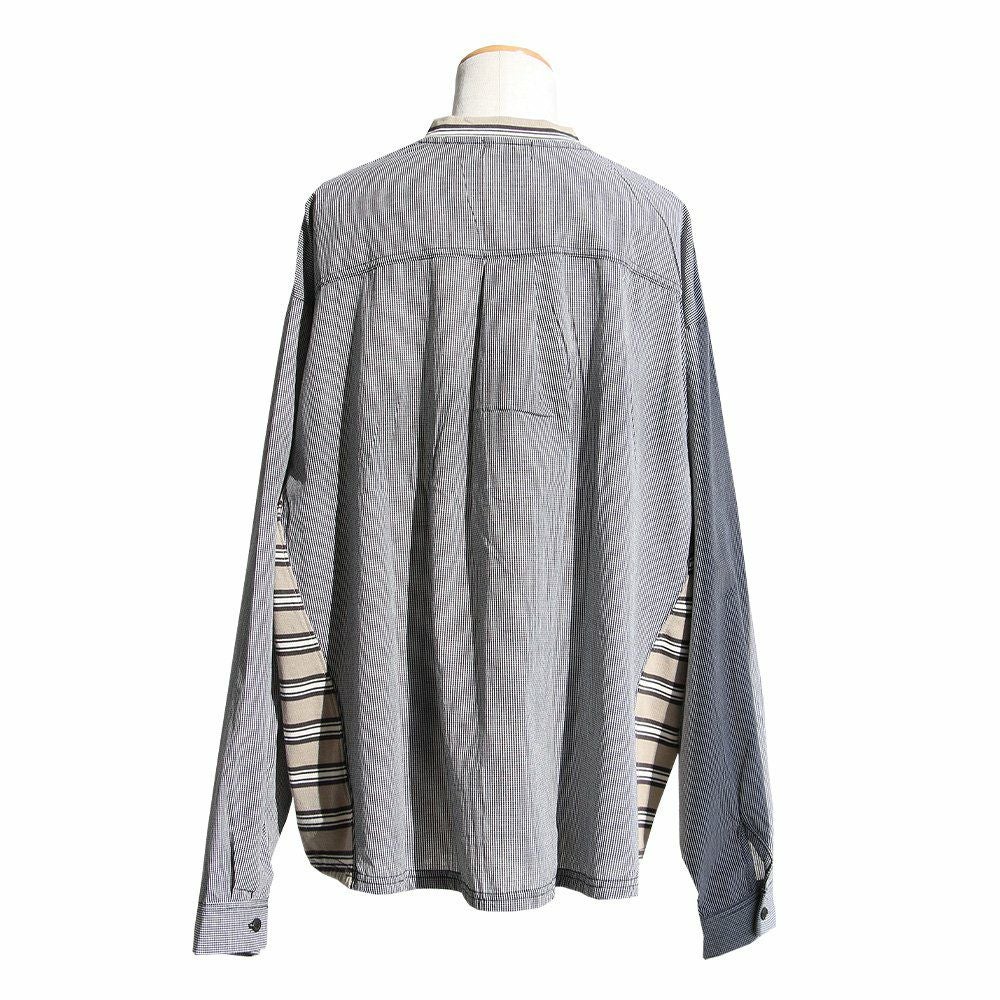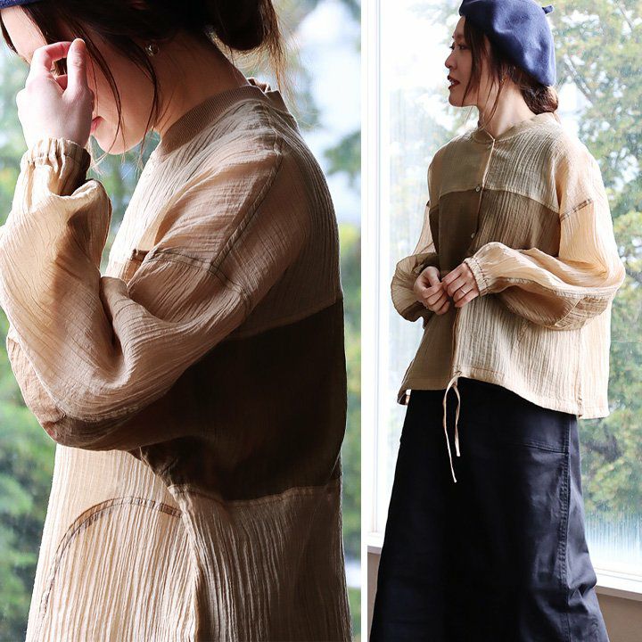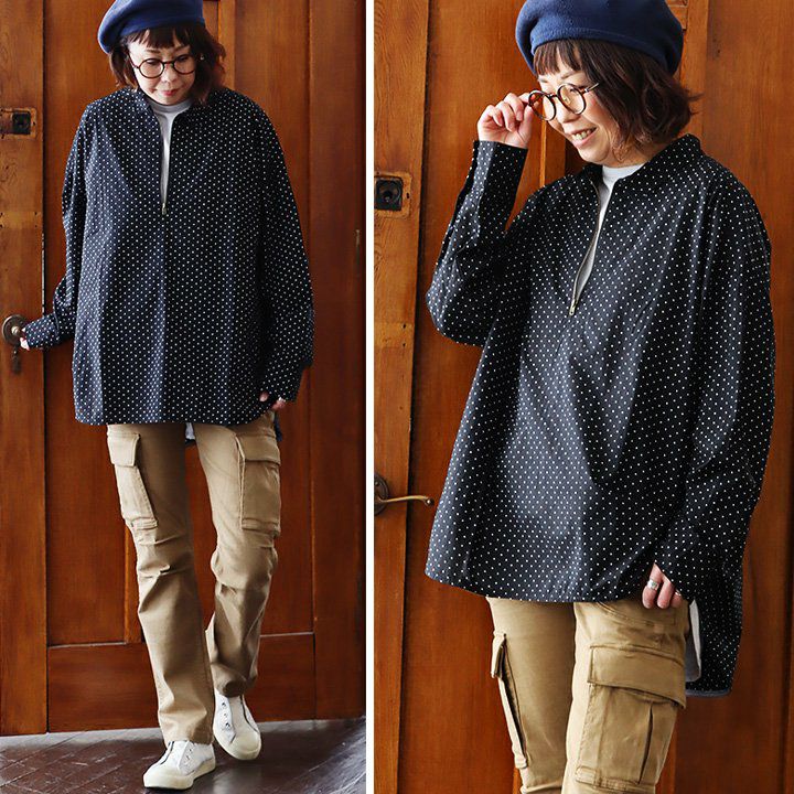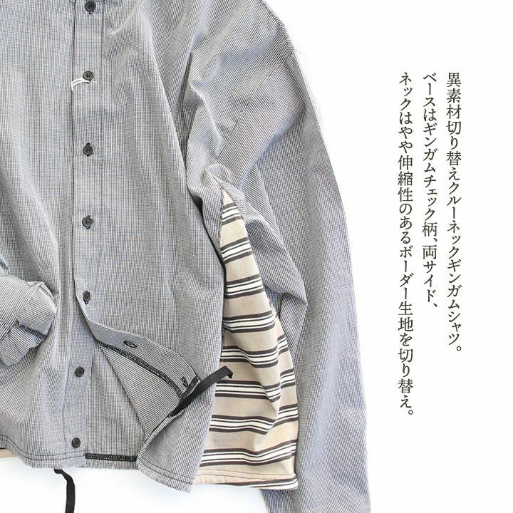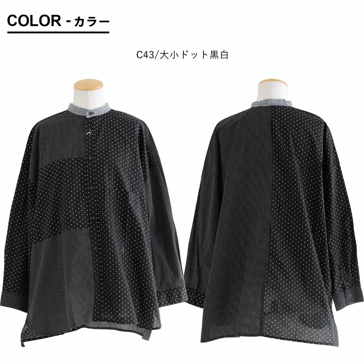 大人感と遊びのバランスセンスが光る、クレイジーシャツ。 シャツ 長袖 レディース バンドカラー ドット柄 パッチワーク ギンガムチェック 綿100% コットン 薄手 軽い 大きいサイズ ゆったり 体型カバー カジュアル 春 夏 パティ GENTIL ジャンティ