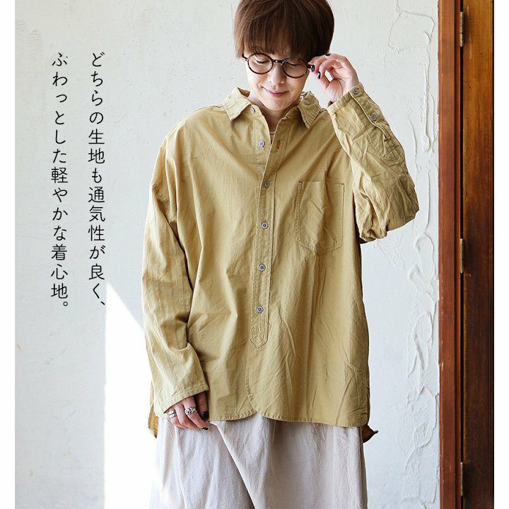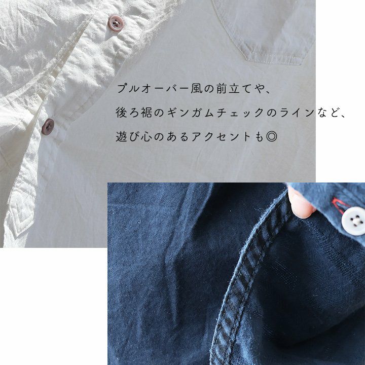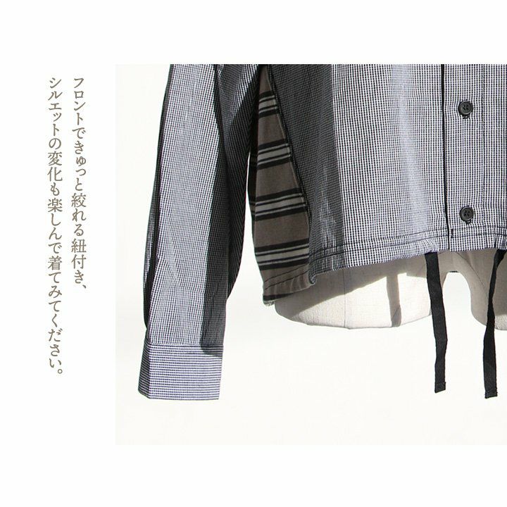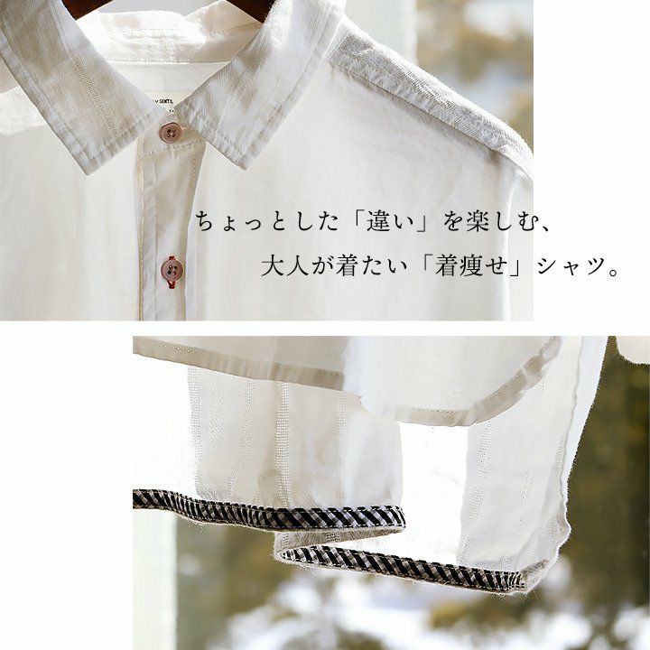 ちょっとした「違い」を楽しむ、大人が着たい「着痩せ」シャツ。 シャツ 長袖 レディース お尻隠れる ドビー ストライプ 綿100% コットン 布帛 ガーゼ ギンガムチェック 異素材切り替え 薄手 軽い 体型カバー 着痩せ カジュアル 春 夏 パティ GENTIL ジャンティ