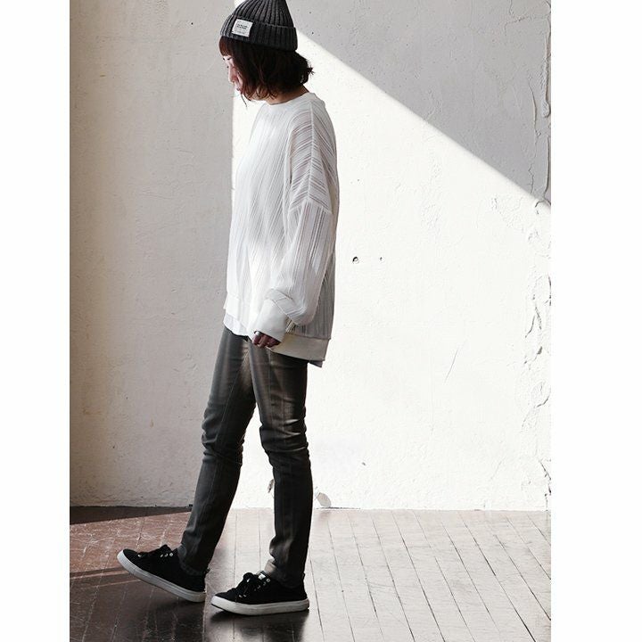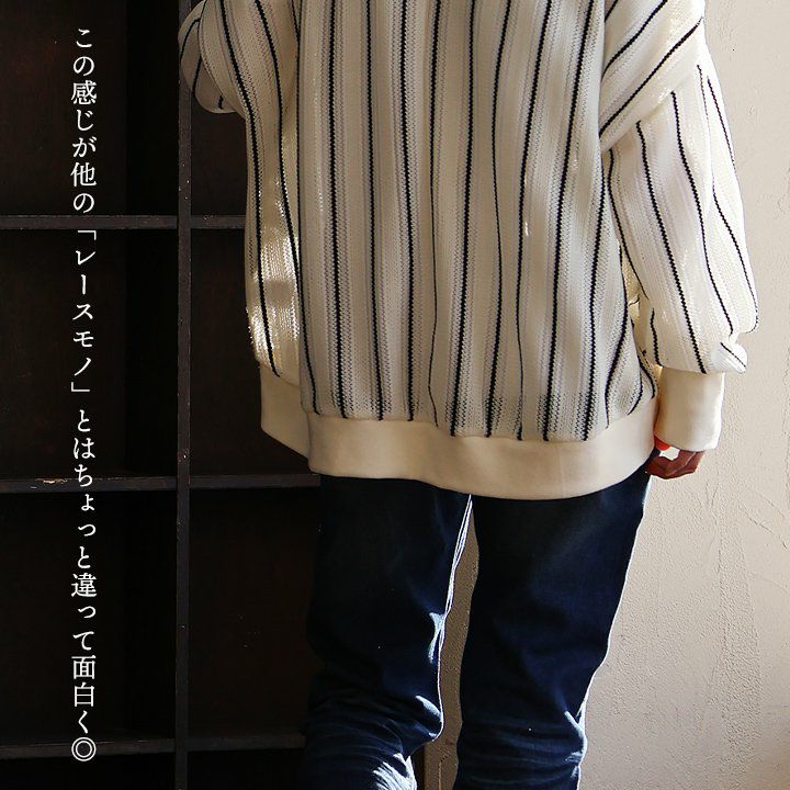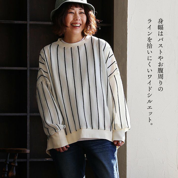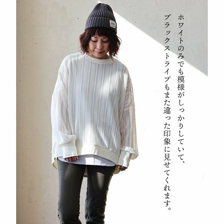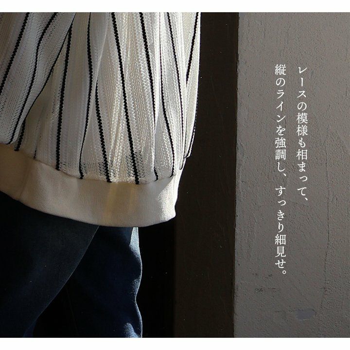 この感じは、所謂「レースモノ」とはちょっと違って面白い。 プルオーバー 長袖 レディース レース ストライプ ポリエステル リブ切り替え 薄手 軽い ゆったり 体型カバー 大きいサイズ 大人カジュアル PATY パティ GENTIL ジャンティ