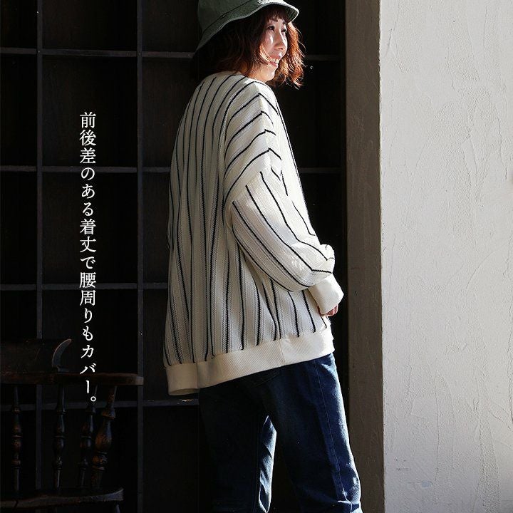 ひと目を惹く柄、惹かれるカタチ。 TIGRE BROCANTE ティグルブロカンテ カーディガン カーデ カットソー 7分袖 メンズ レディース Vネック ボーダー 綿100% コットン 日本製 伸縮性 しっかり生地 丈夫 ゆったり 大きいサイズ 体型カバー カジュアル アメカジ レトロ 夏 パティ