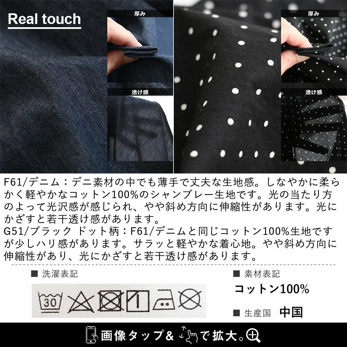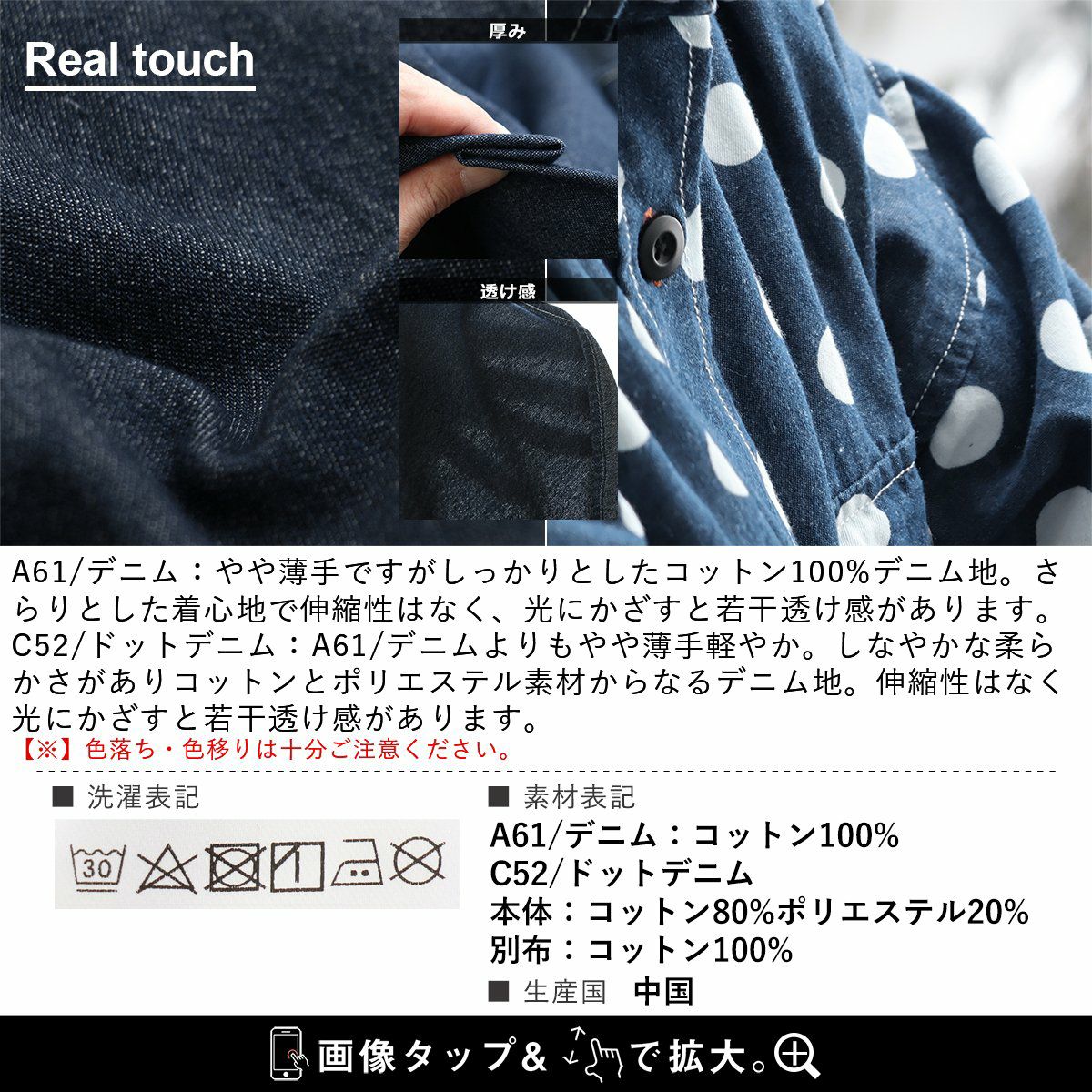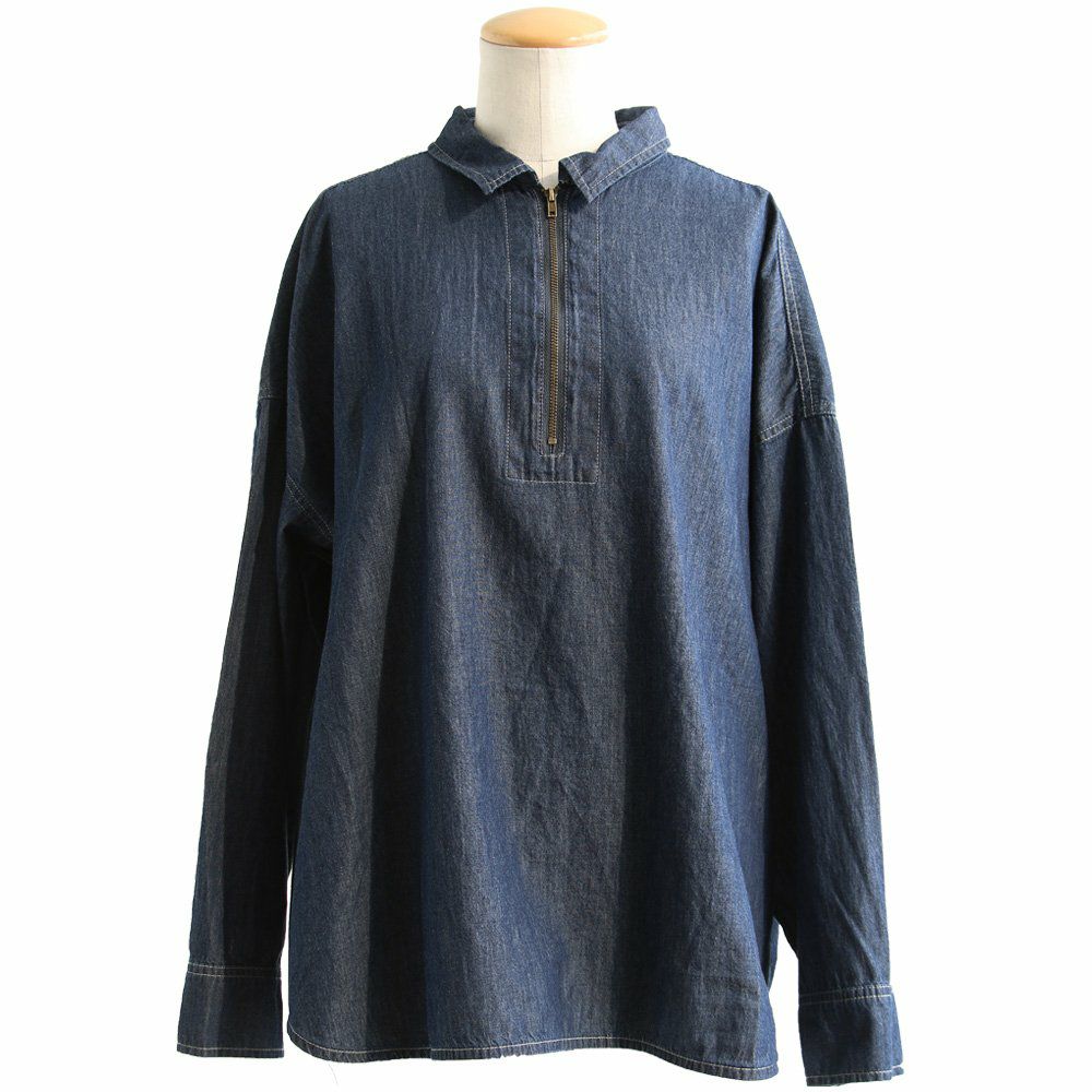 カジュアル派にハマる、「今の顔」。 デニムシャツ ジップアップシャツ デニム 長袖 レディース 重ね着 お尻隠れる デニム ドット柄 コットン100% 綿 薄手 軽い ジップ 体型カバー 大きいサイズ 着痩せ カジュアル PATY パティ GENTIL ジャンティ