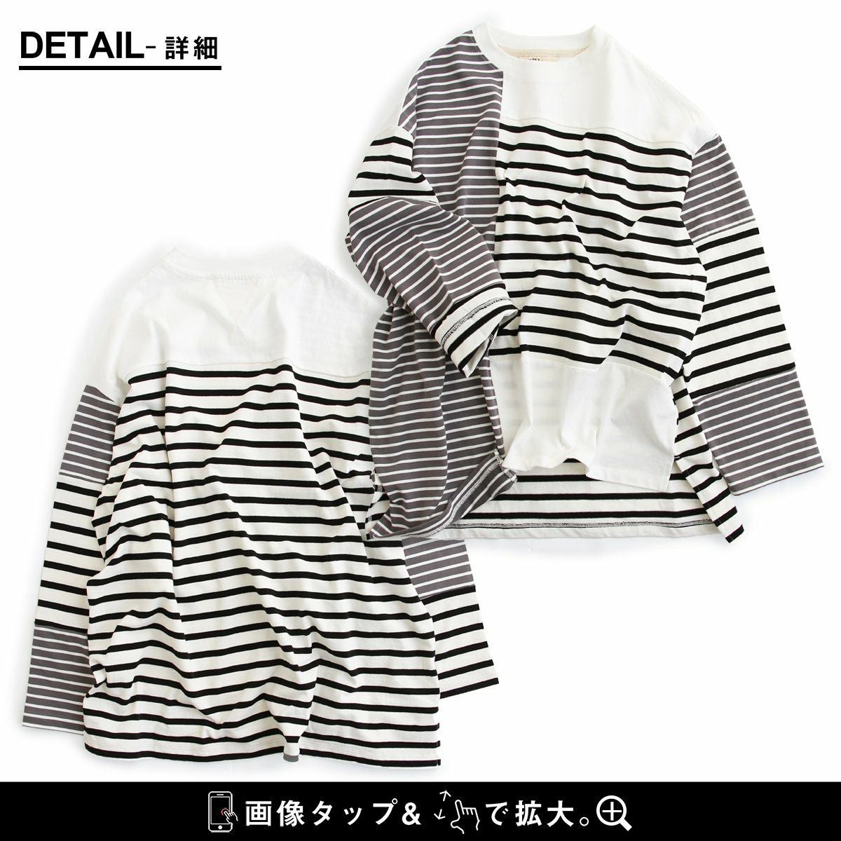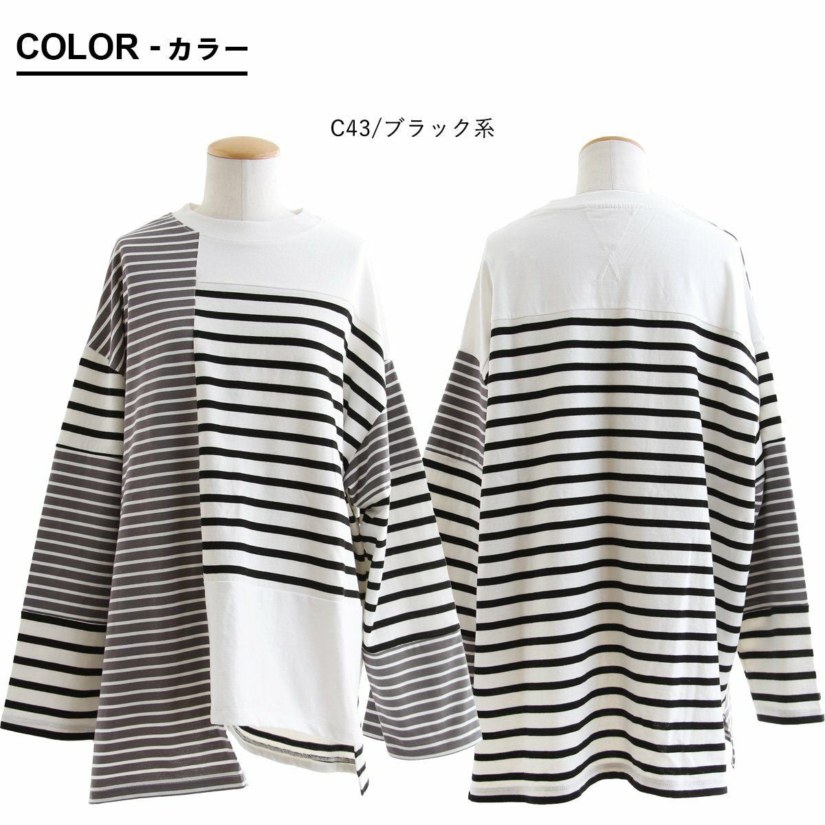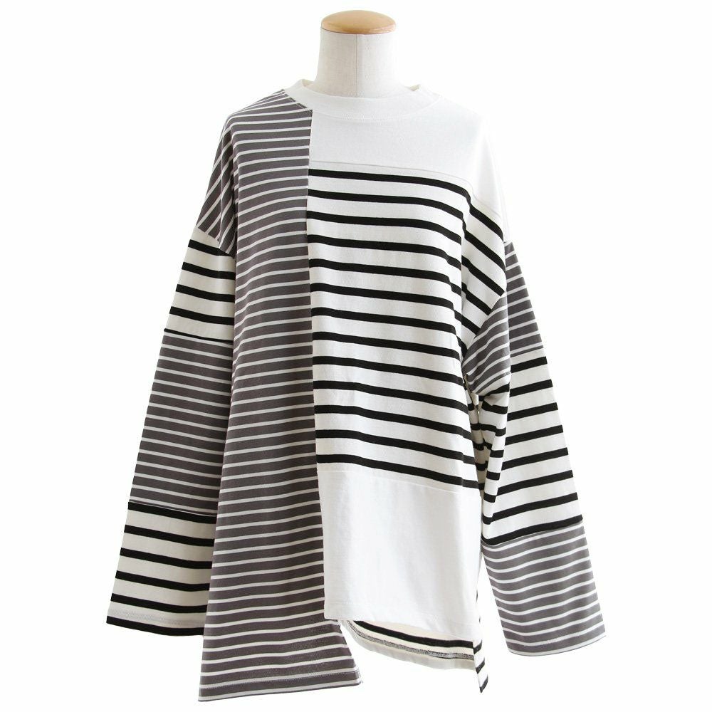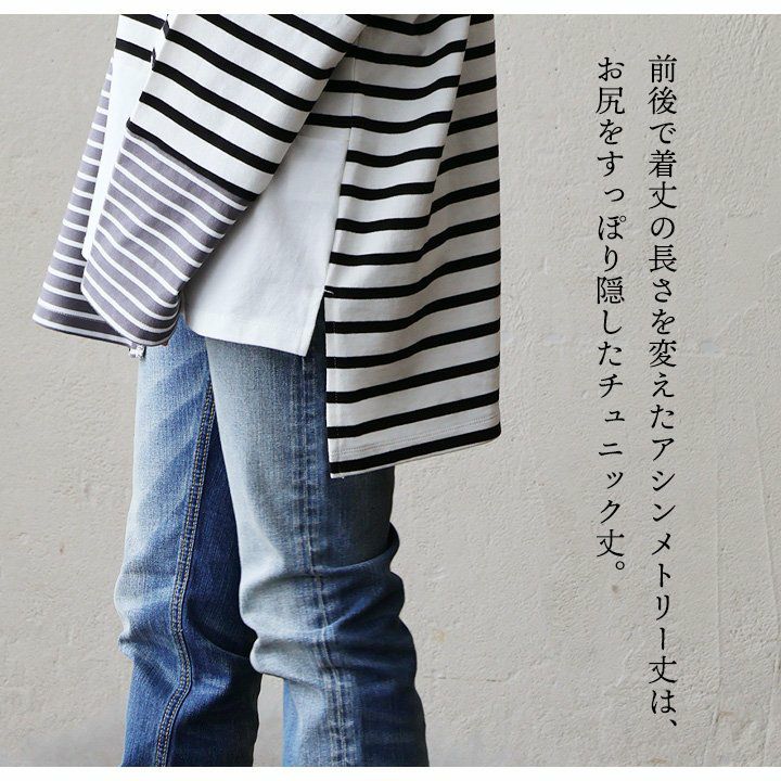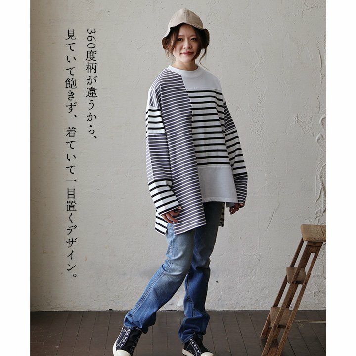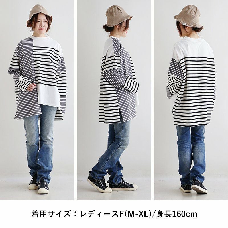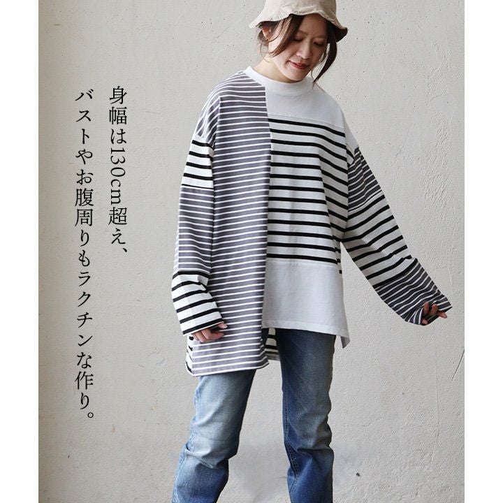 包み込んでくれるような、安心感。 ロンT 長袖 レディース お尻隠れる 着痩せ クルーネック ボーダー 配色切り替え コットン100% 綿 ゆったり 大きいサイズ 体型カバー カジュアル PATY パティ GENTIL ジャンティ
