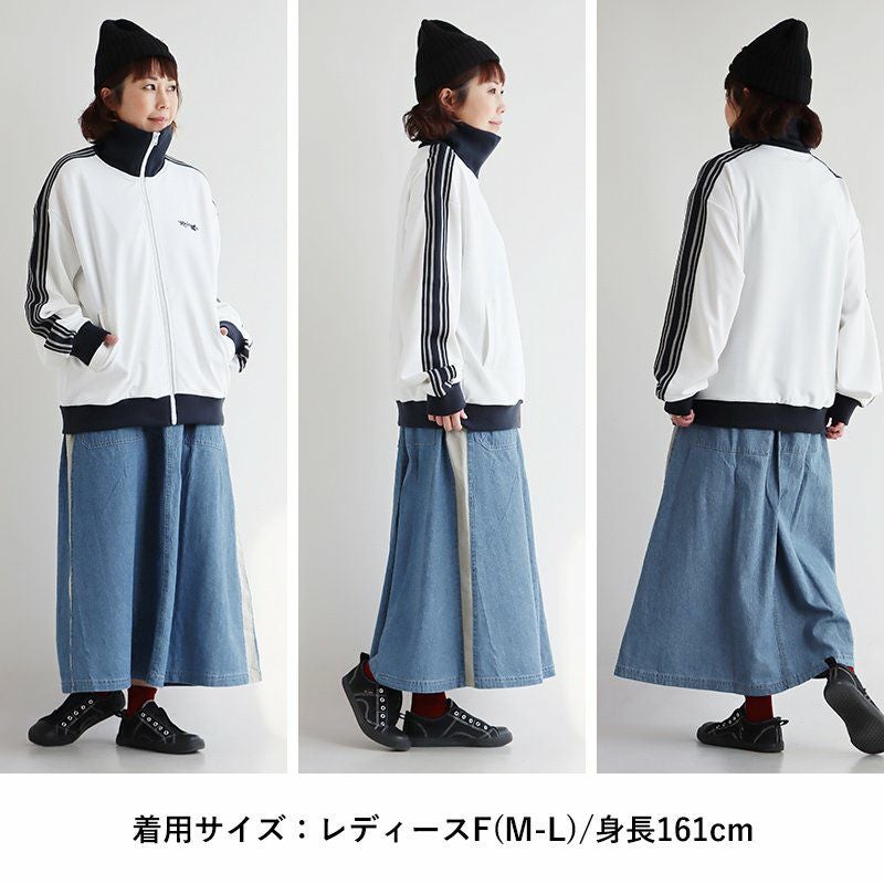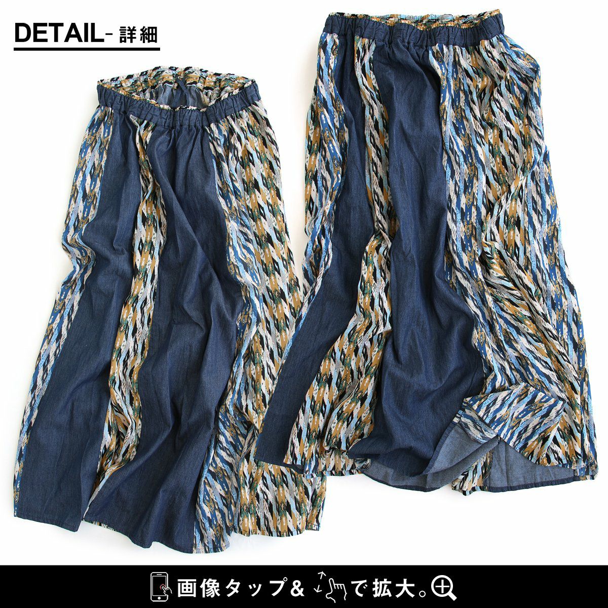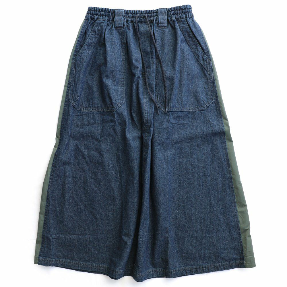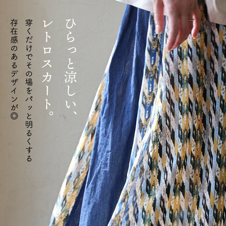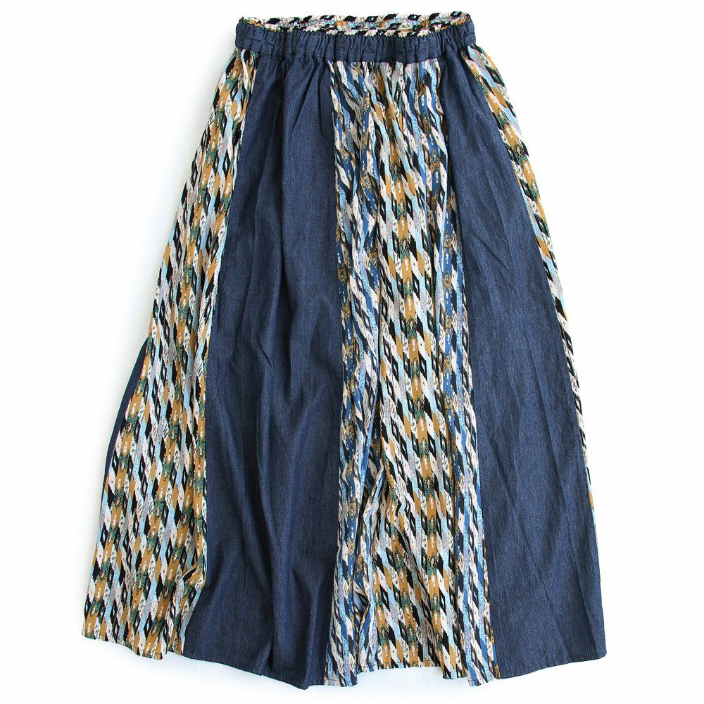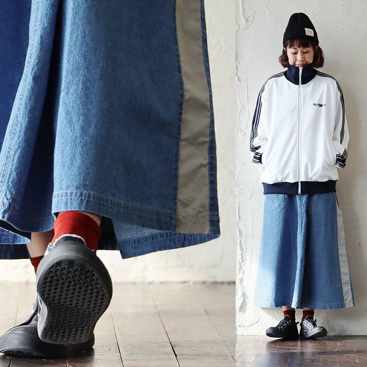 カジュアル派穿きたいデニムスカートは、ちょっとしたポイントで差を付けて。 スカート ロング丈 フレア レディース デニム コットン100% 綿 しっかり生地 異素材切り替え ウエストゴム 紐付き ポケット ゆったり 体型カバー 大きいサイズ カジュアル メンズライク PATY パティ GENTIL ジャンティ