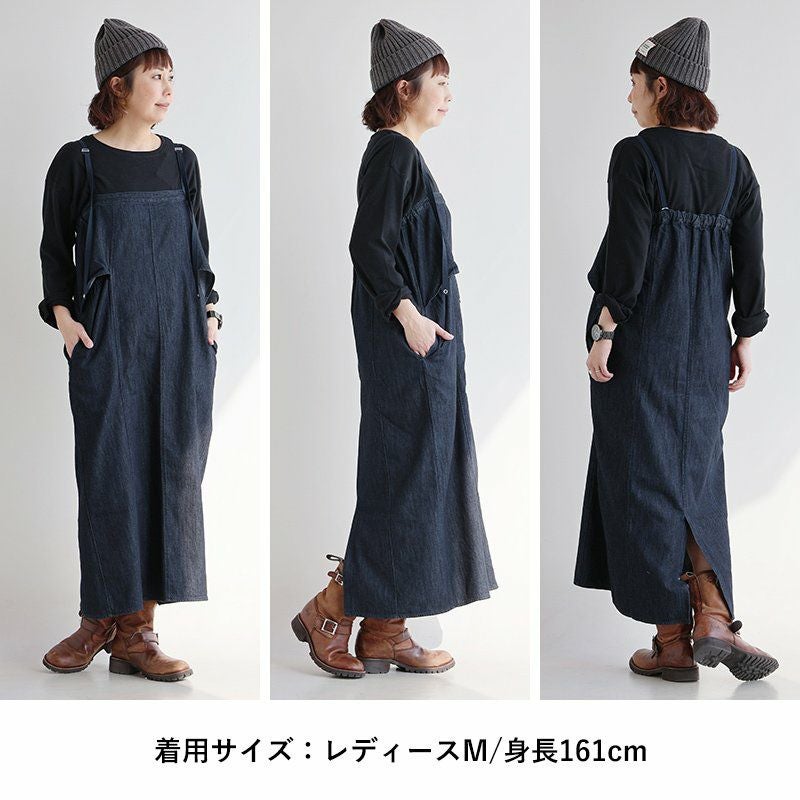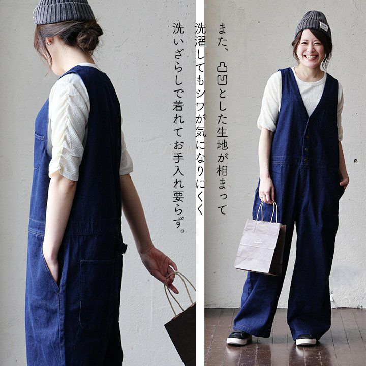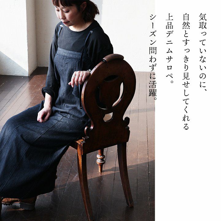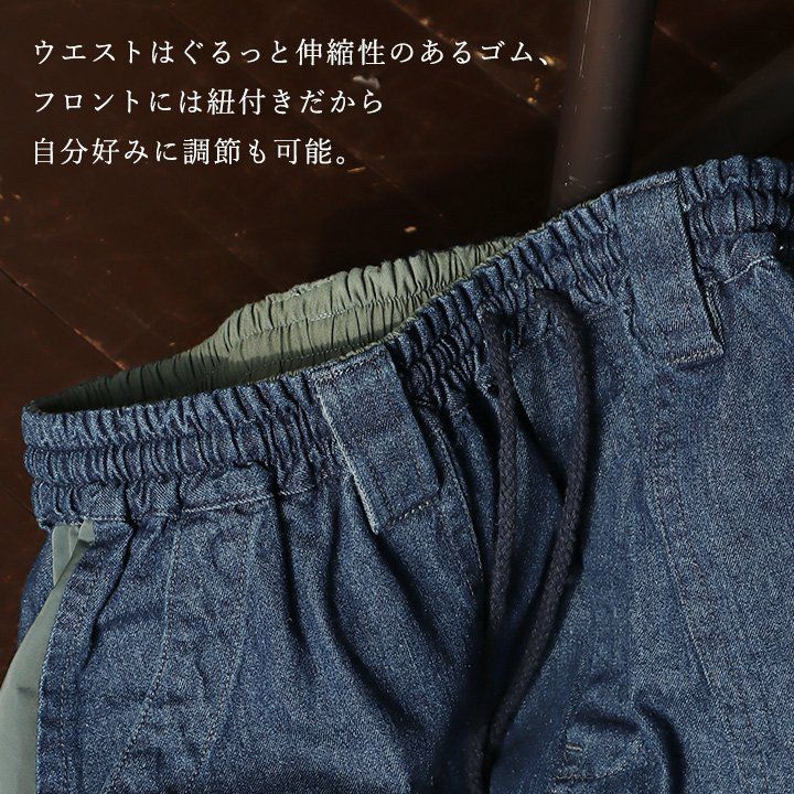 この「ダボっと感」が、見えない後ろ姿まですっきり見え。 バルーンパンツ パンツ ワイド レディース デニム ヒッコリー 配色 綿100% ウエストゴム 紐付き しっかり生地 ノンストレッチ ゆったり 体型カバー 大きいサイズ カジュアル メンズライク パティ GENTIL ジャンティ
