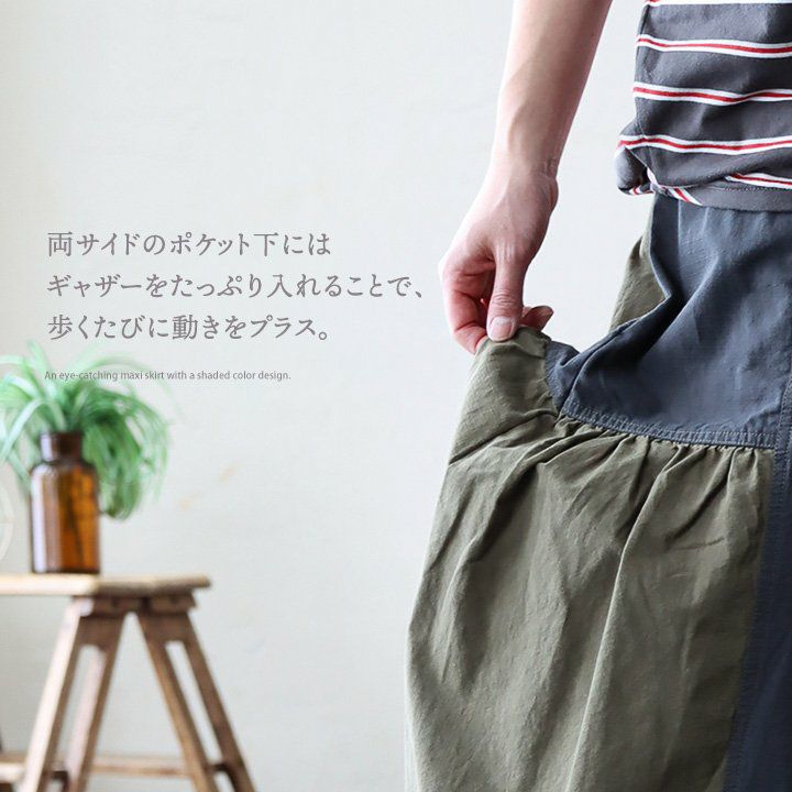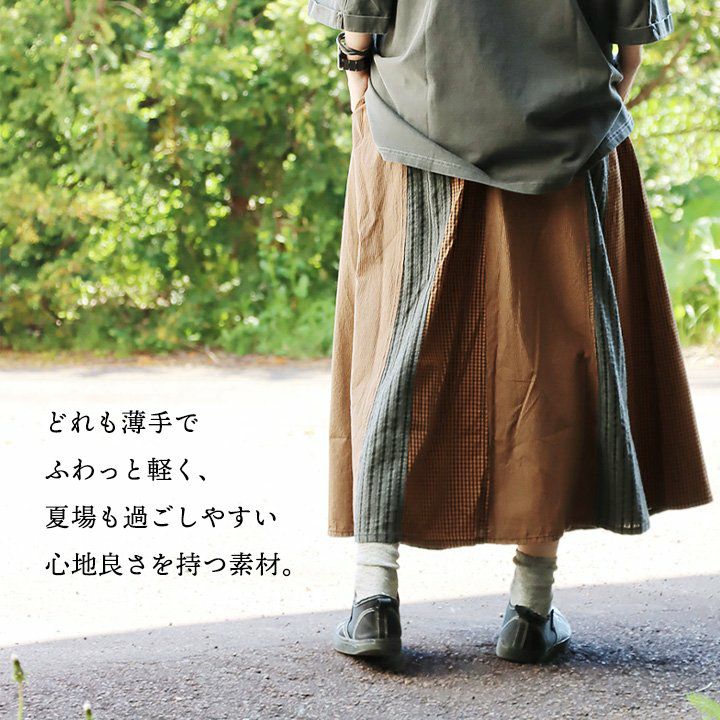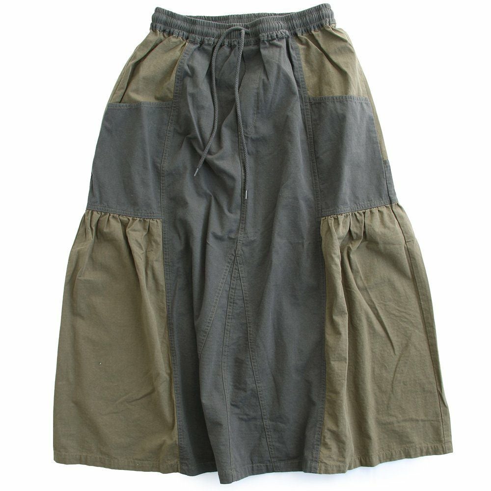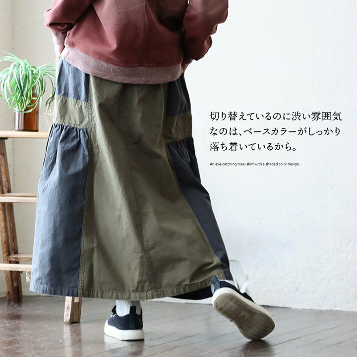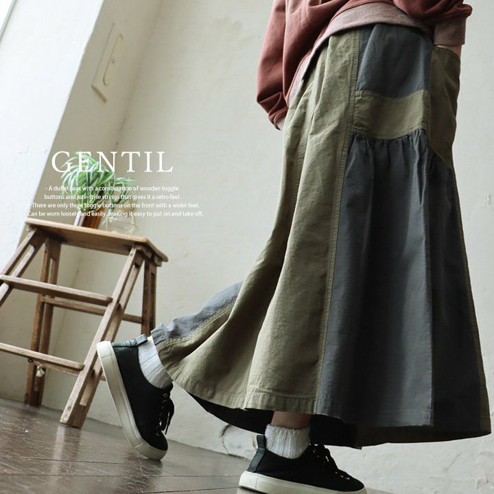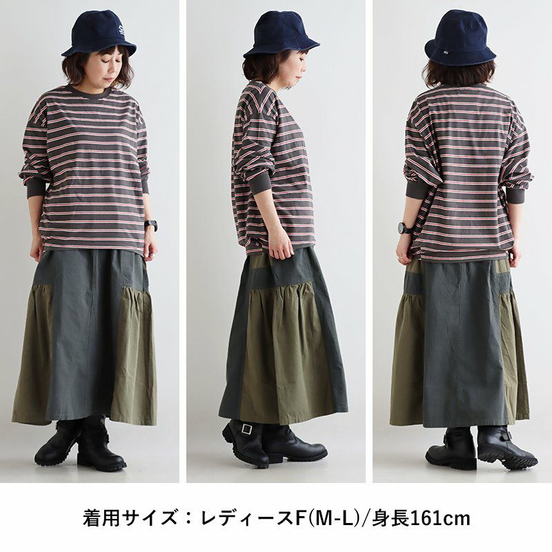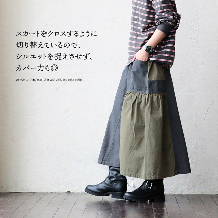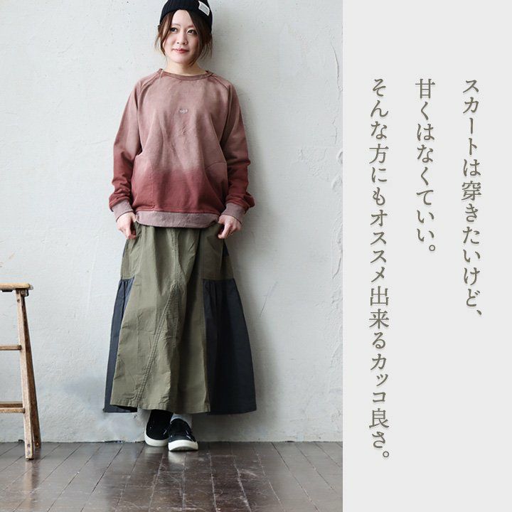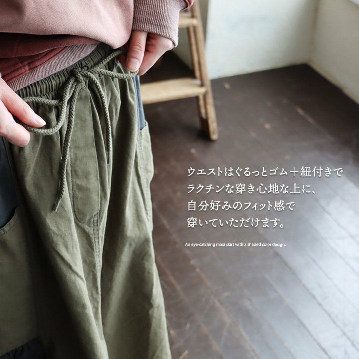 スカートだけど甘くない。 スカート フレアスカート ロング レディース コットン100% 綿 配色切り替え リップストップ しっかり生地 丈夫 ウエストゴム ゆったり 体型カバー 大きいサイズ カジュアル メンズライク ミリタリー PATY パティ GENTIL ジャンティ