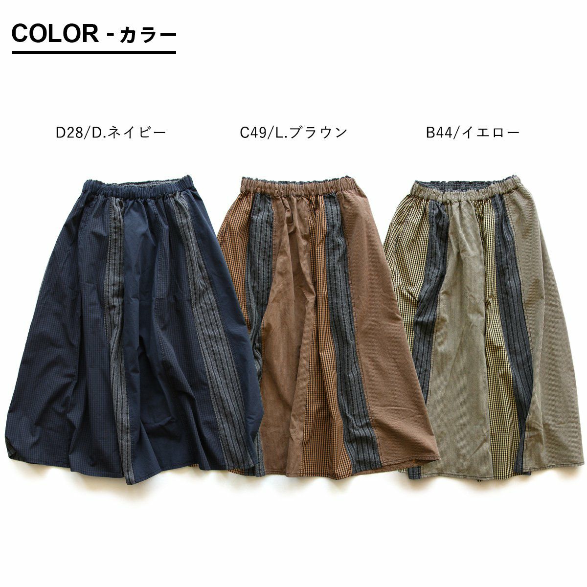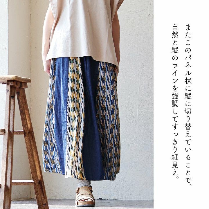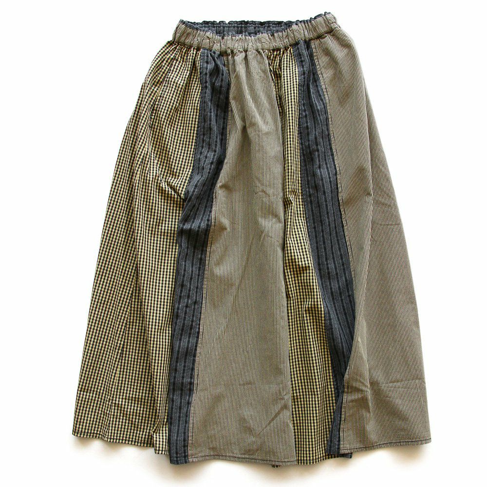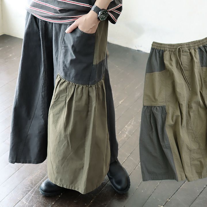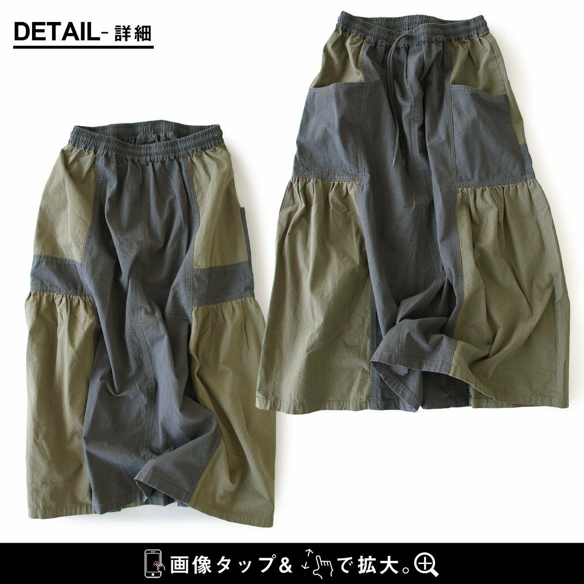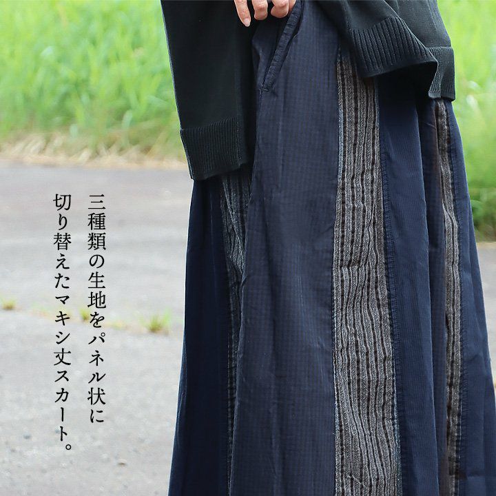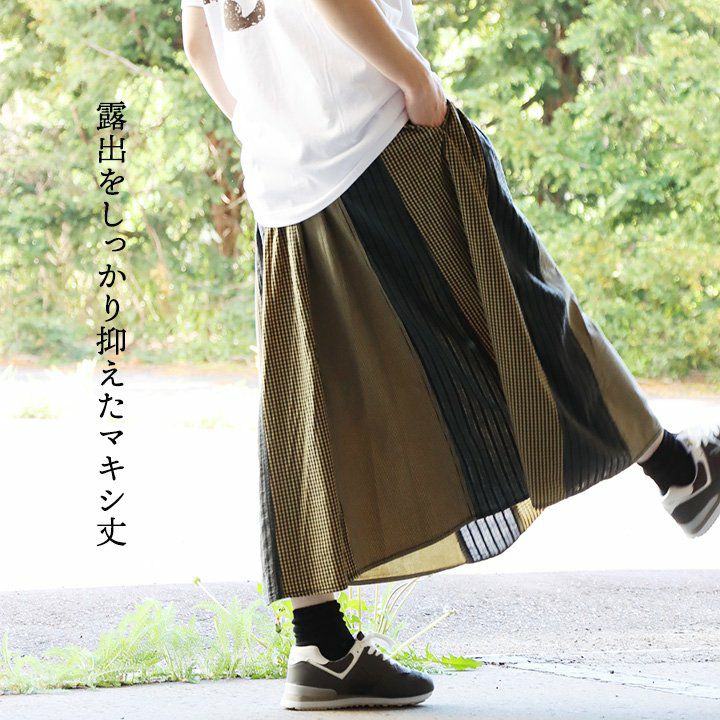 スカートだけど甘くない。 スカート フレアスカート ロング レディース コットン100% 綿 配色切り替え リップストップ しっかり生地 丈夫 ウエストゴム ゆったり 体型カバー 大きいサイズ カジュアル メンズライク ミリタリー PATY パティ GENTIL ジャンティ