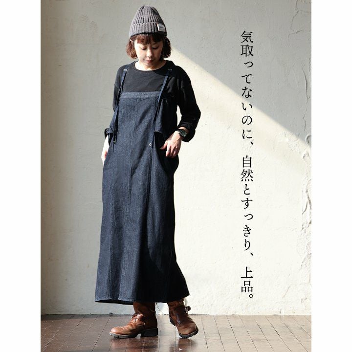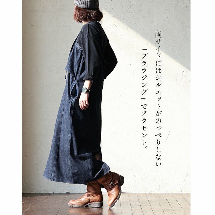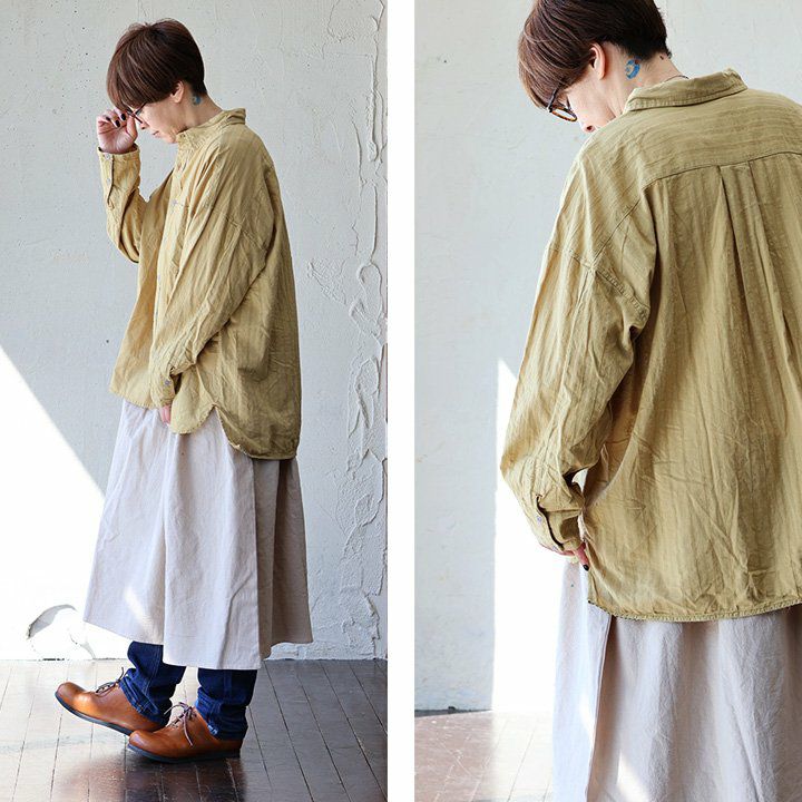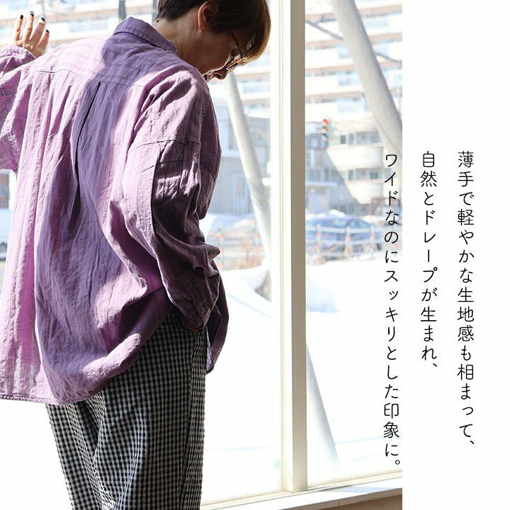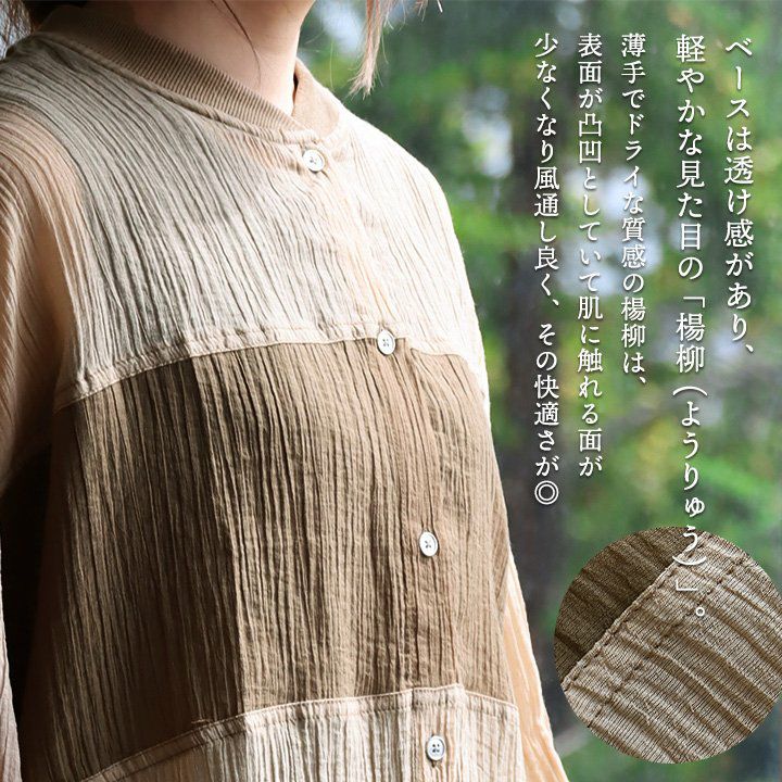 暑い季節も「さらり」と品良く。 TIGRE BROCANTE ティグルブロカンテ ワンピース ワンピ 長袖 レディース スタンドカラー 無地 綿100% コットン 日本製 シワ加工 薄手 通気性 涼しい しっかり生地 フリル ギャザー ゆったり 体型カバー カジュアル パティ