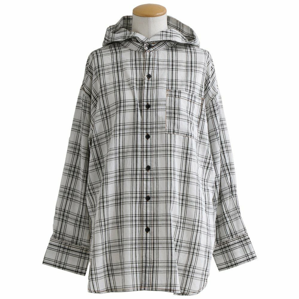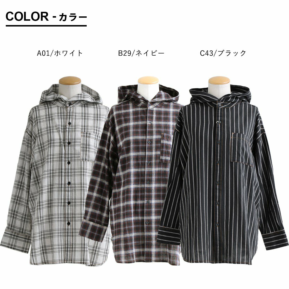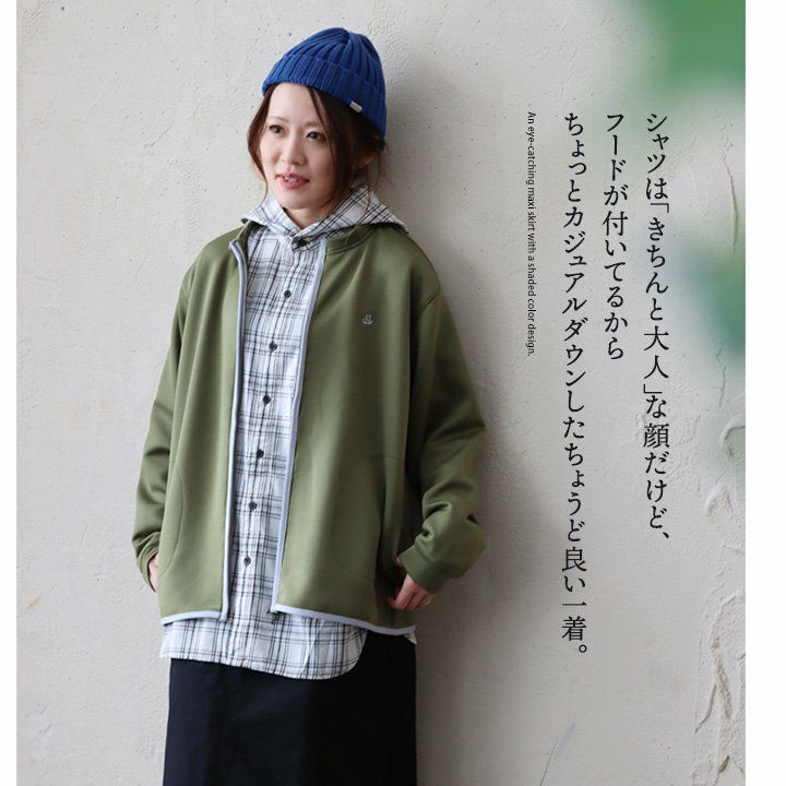 きちんと感のあるシャツ。なのに、カジュアルでラインを拾わない。 シャツ シャツパーカー 長袖 レディース お尻隠れる 着痩せ フード付き 無地 綿100% コットン タイプライター ボタン開き 薄手 軽い しっかり生地 体型カバー 大きいサイズ 重ね着 春 春服 カジュアル パティ le colis ルコリ