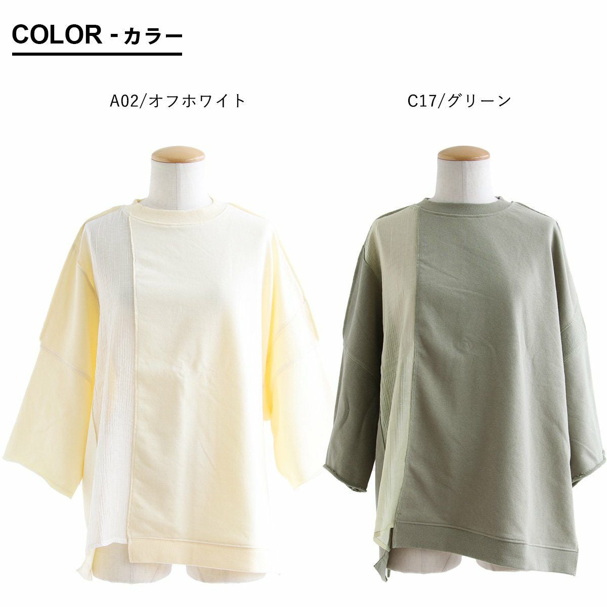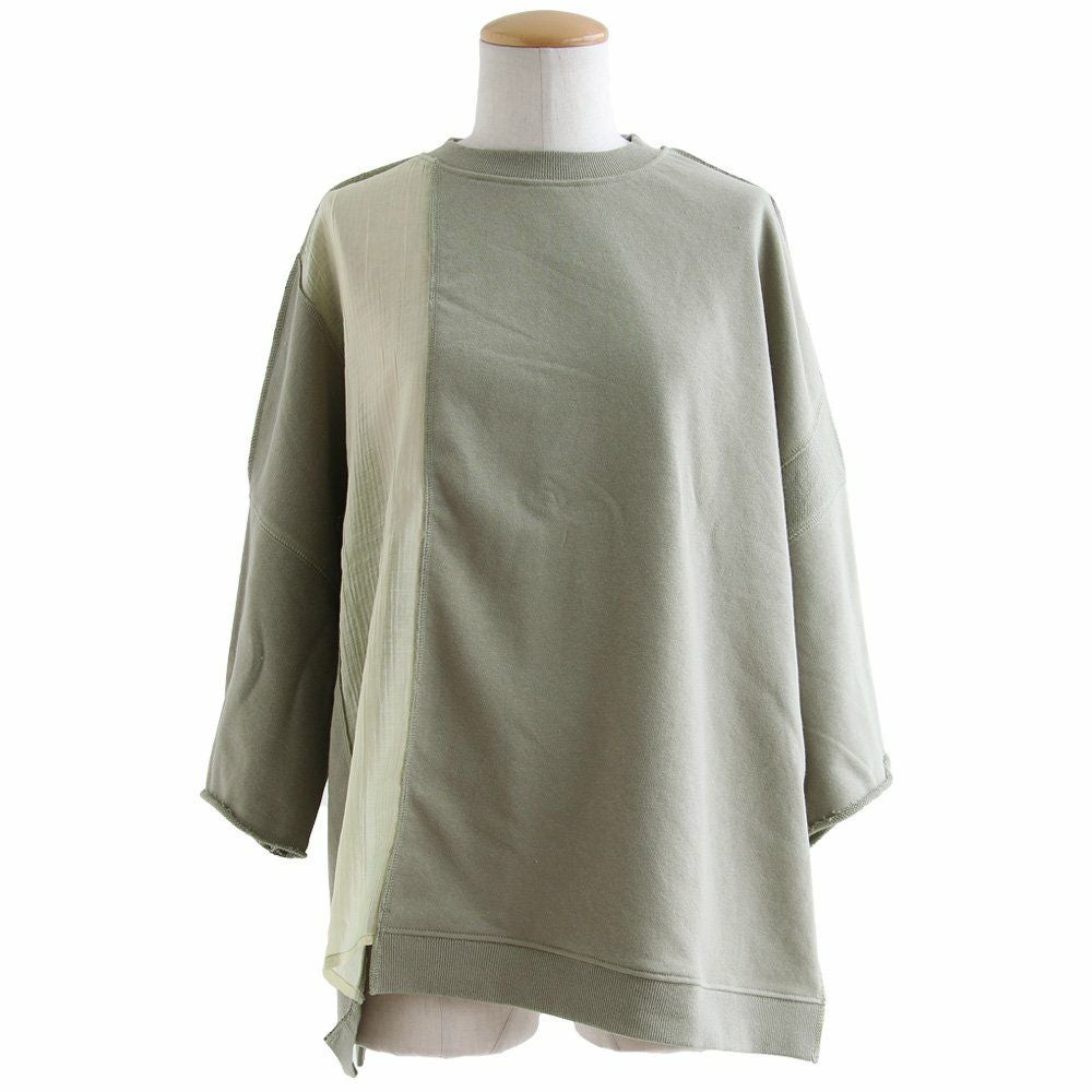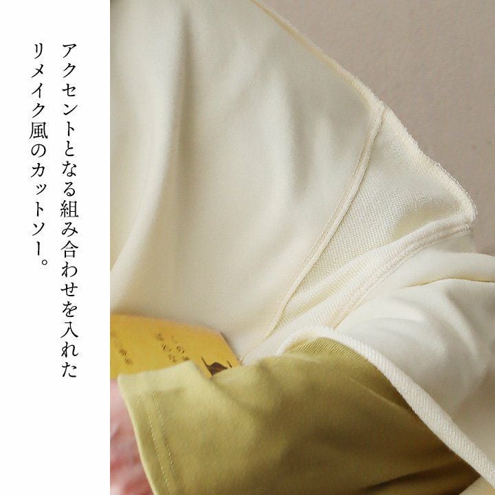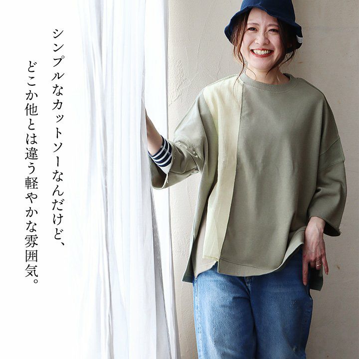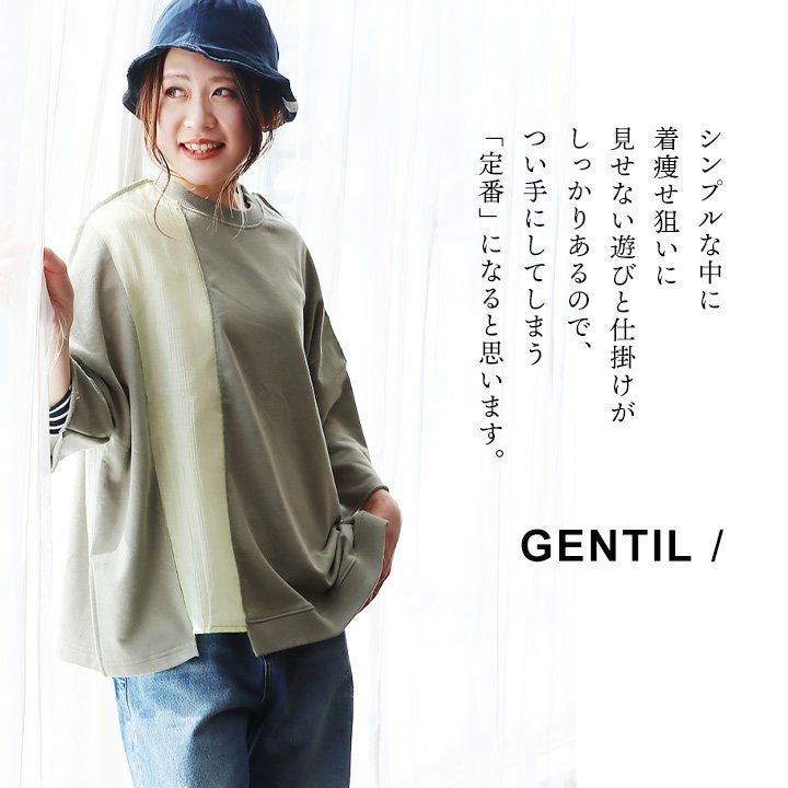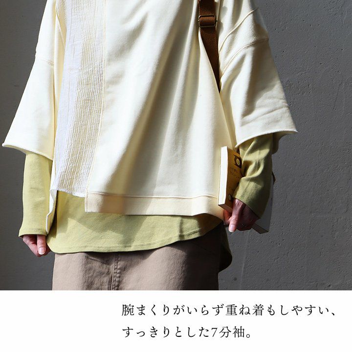 着痩せ狙いに見せない、遊びと仕掛け。 Tシャツ 7分袖 レディース クルーネック リメイク風 異素材切り替え コットン ポリエステル ミニ裏毛 伸縮性 ゆったり 体型カバー 大きいサイズ 春 夏 カジュアル メンズライク パティ GENTIL ジャンティ