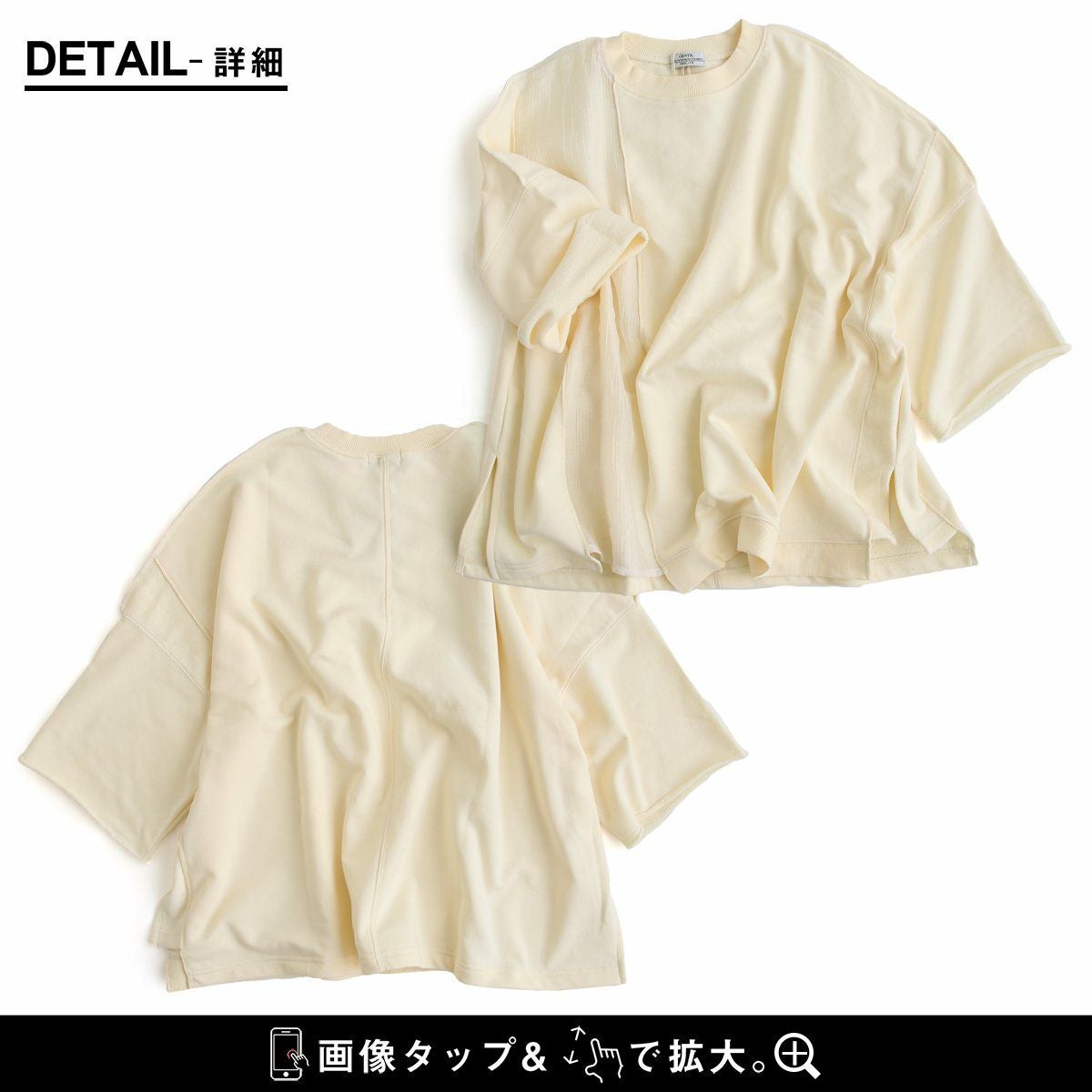 「いつものボトムに合わせるだけ」で、いつも以上に幅広いバリエーション。 【メール便38】 Tシャツ 5分袖 レディース クルーネック ワイド 着痩せ すっきり リメイク風 異素材 無地 スラブ天竺 レーヨン 薄手 涼しい 軽い 伸縮性 ゆったり 体型カバー 大きいサイズ カジュアル 夏 パティ GENTIL ジャンティ