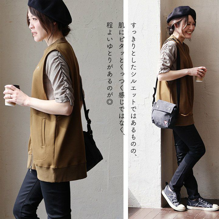 メンズっぽさが好みなら。 ベスト ライトアウター レディース コットン ナイロン 薄手 軽い ゆったり 体型カバー お尻隠れる 重ね着 レイヤード カジュアル メンズライク PATY パティ GENTIL ジャンティ