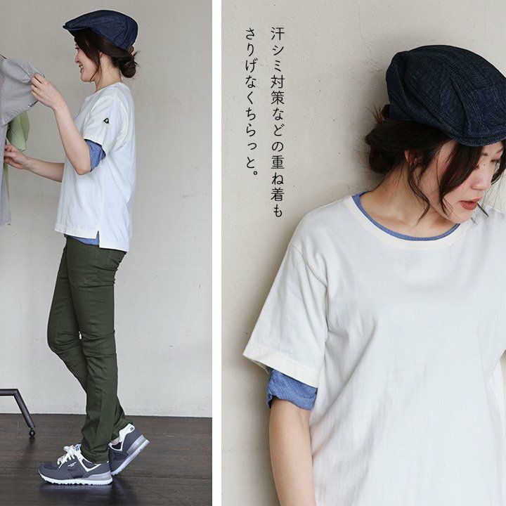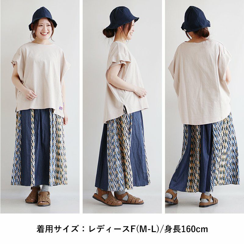 しっかり遊んだ「ゆる楽」Tシャツ。 【メール便50】 Tシャツ 半袖 レディース ドルマン クルーネック ピグメント 米綿100% USAコットン 薄手 しっかり生地 丈夫 異素材切り替え ポケット ロックコード ゆったり 大きいサイズ 体型カバー カジュアル メンズライク パティ GENTIL ジャンティ