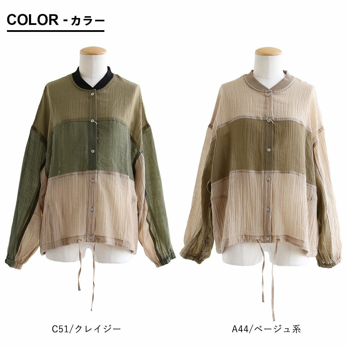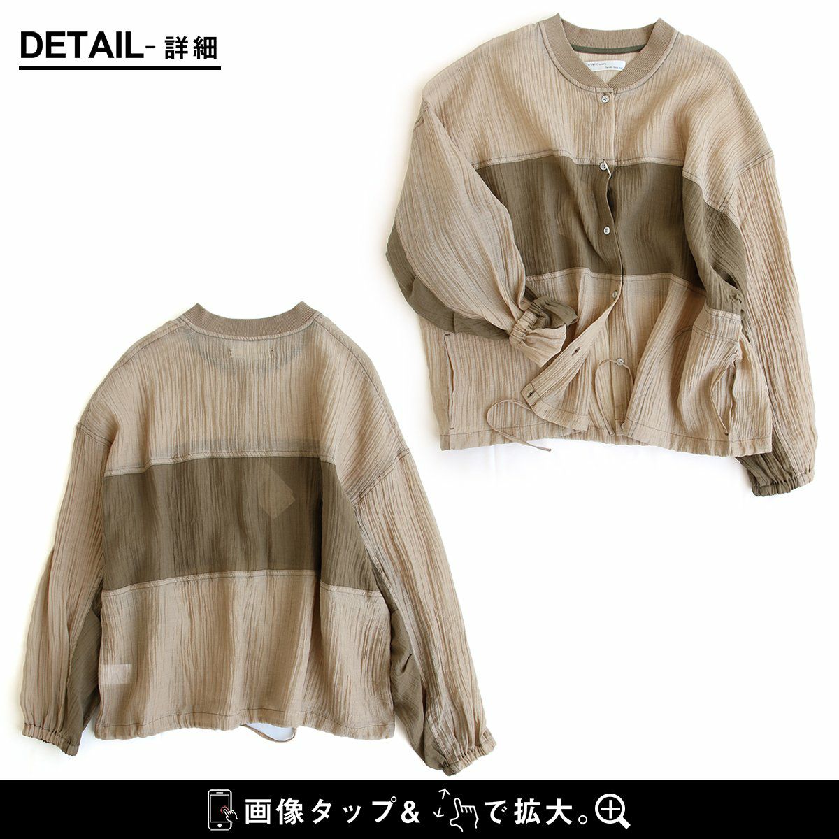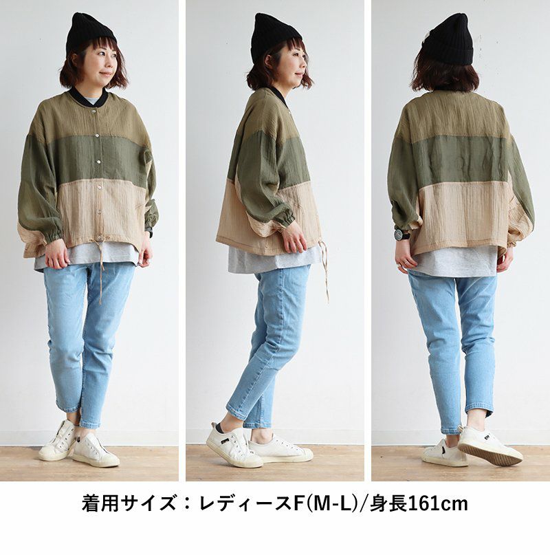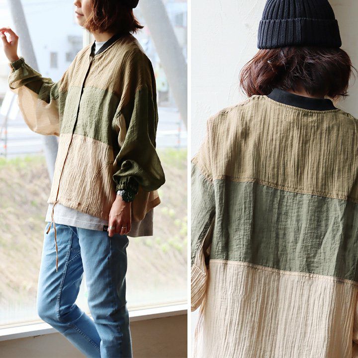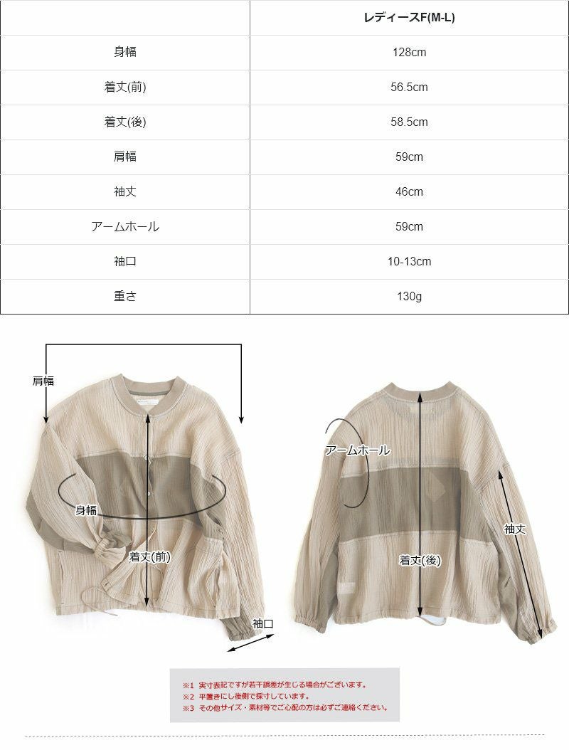 ふわっと軽いのに、カッコいい、この「ギャップ」。 ブルゾン 長袖 レディース 楊柳 薄手 ナイロン シアー 涼しい 通気性 軽い 配色リブ ゆったり 体型カバー 大きいサイズ カジュアル ミリタリー メンズライク 夏 パティ GENTIL ジャンティ