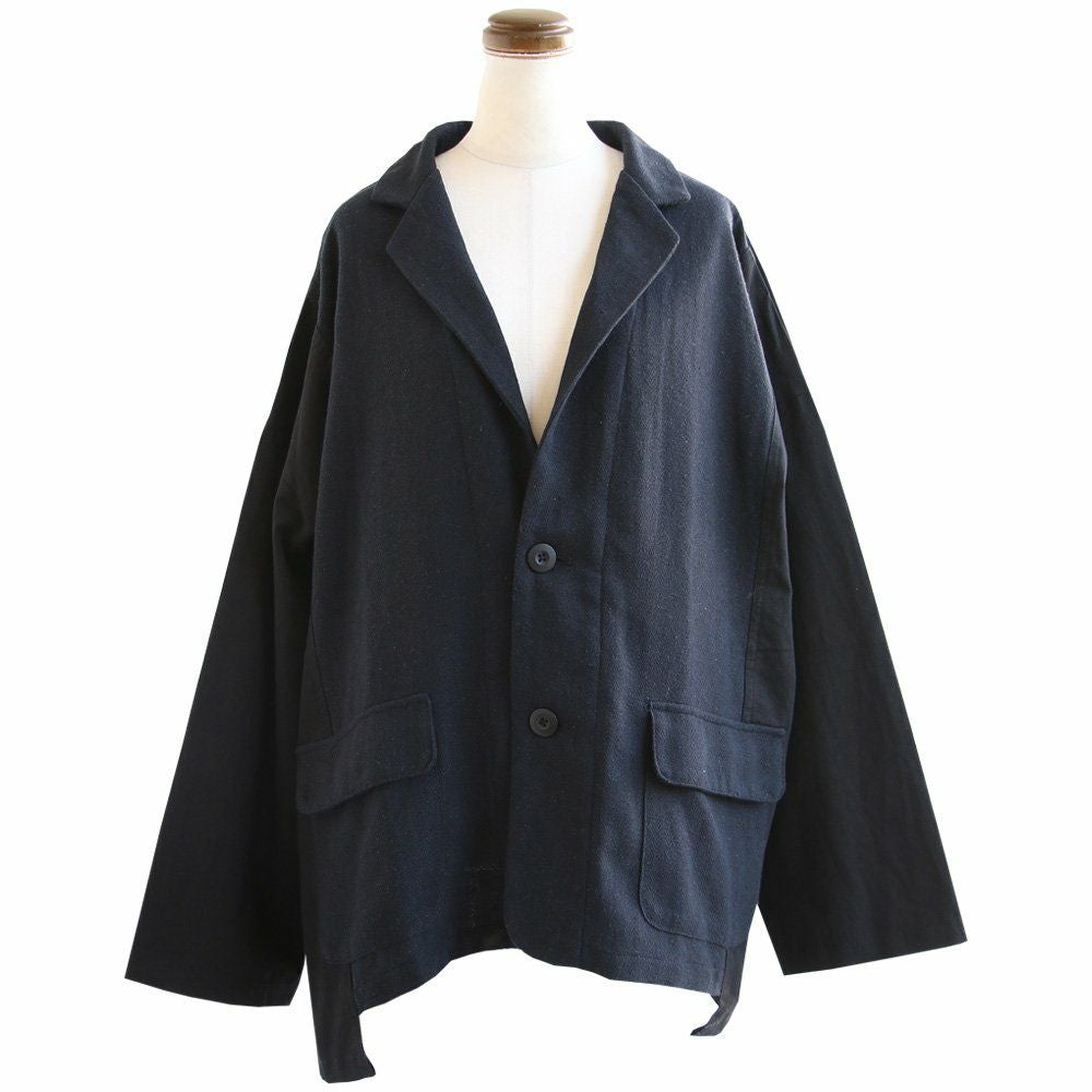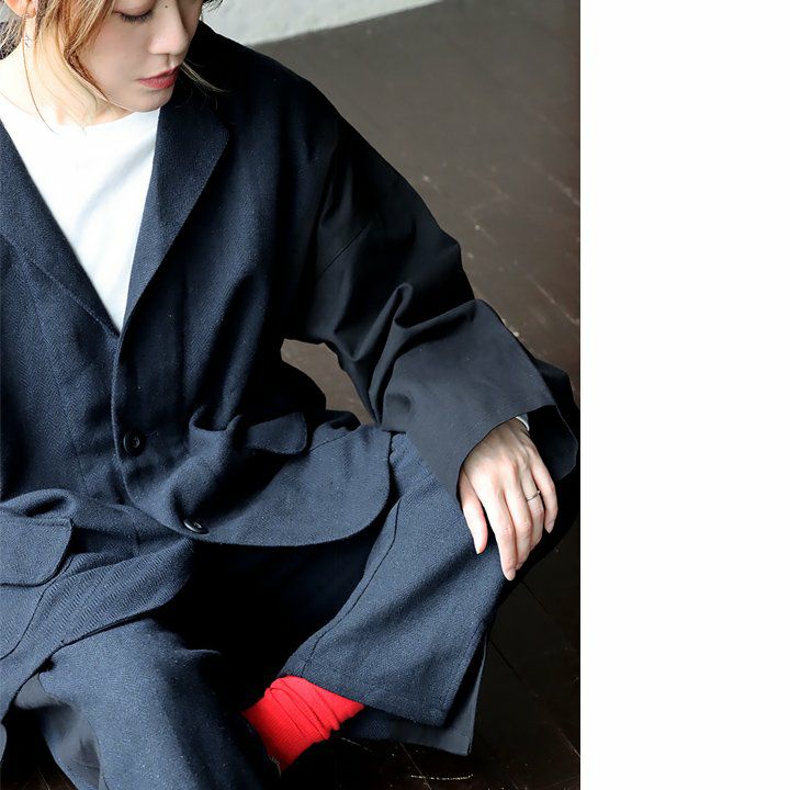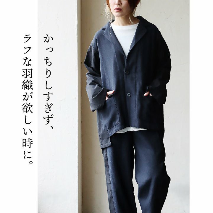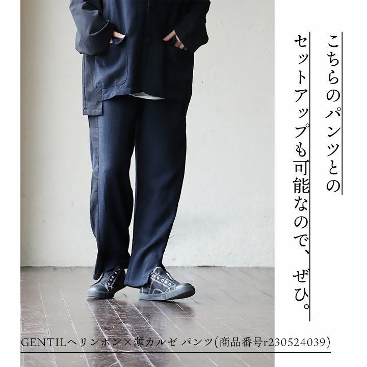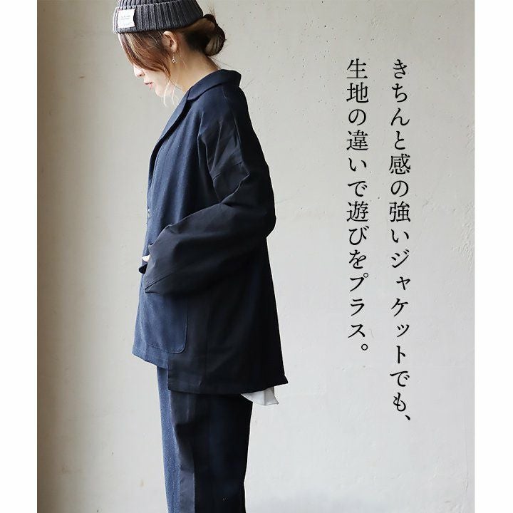 かっちりしすぎず、ラフな羽織が欲しい時に。 ジャケット 長袖 レディース お尻隠れる 着痩せ 大きいサイズ 異素材切り替え 配色 へリンボーン 綿100% 秋 大人カジュアル GENTIL ジャンティ