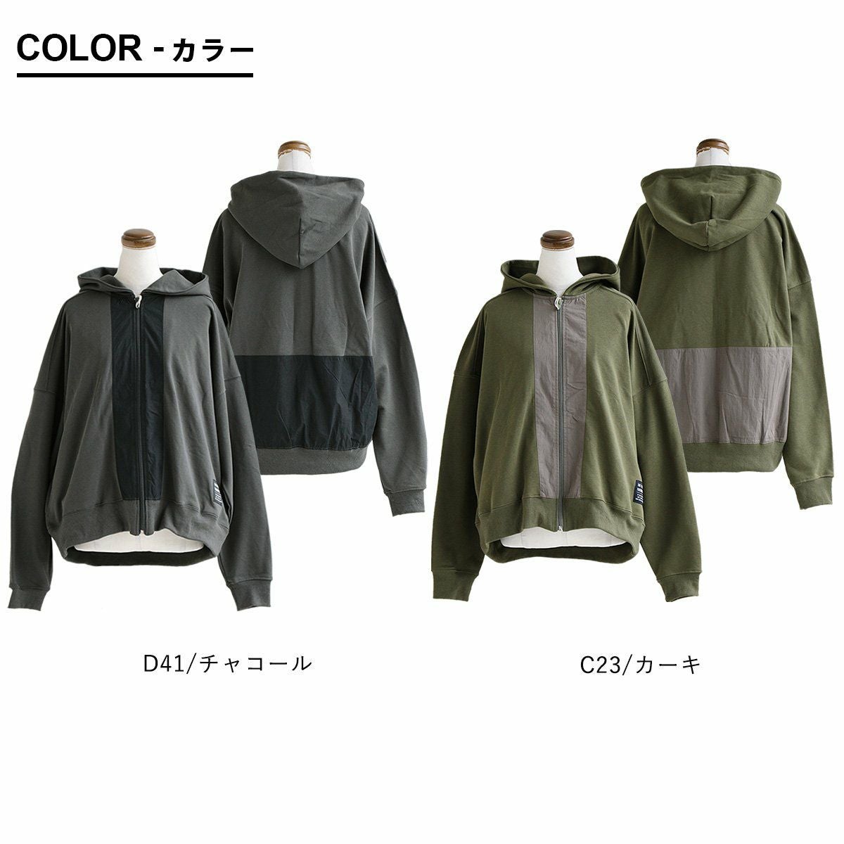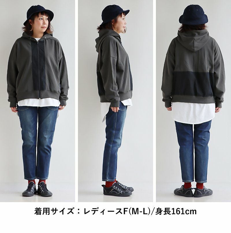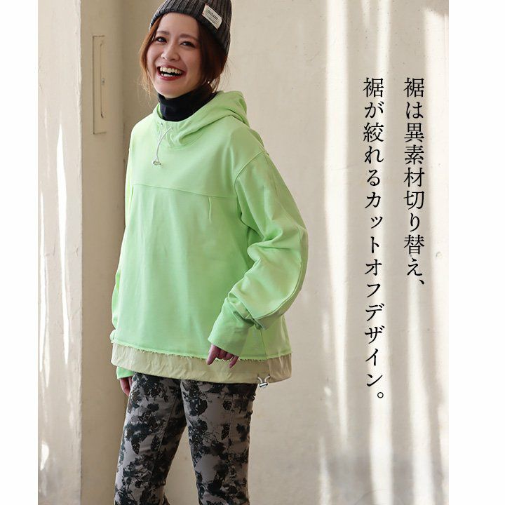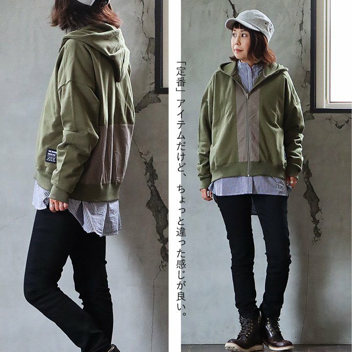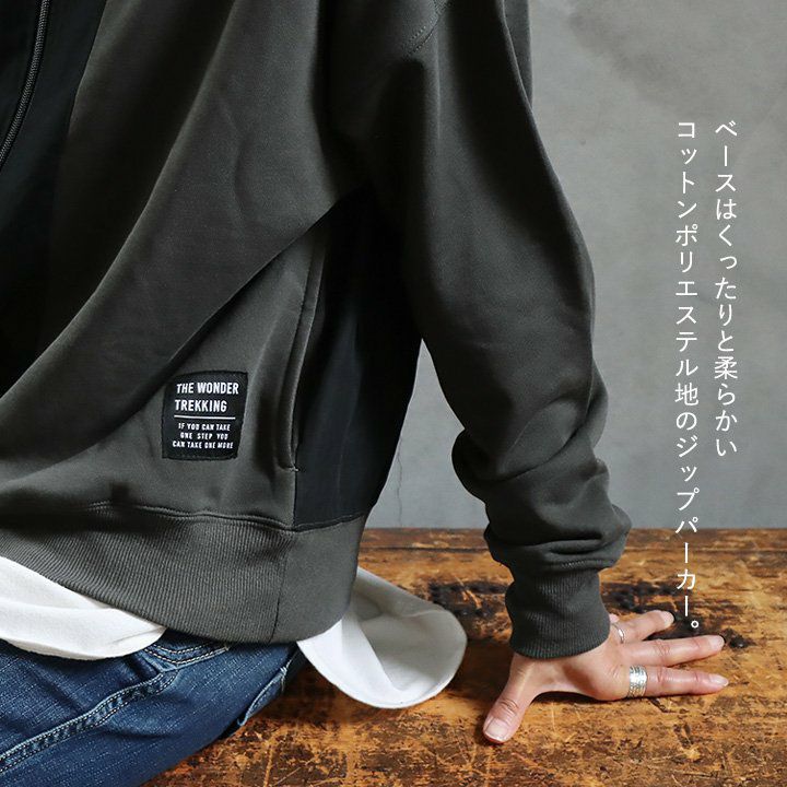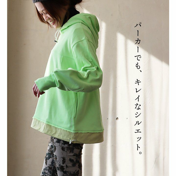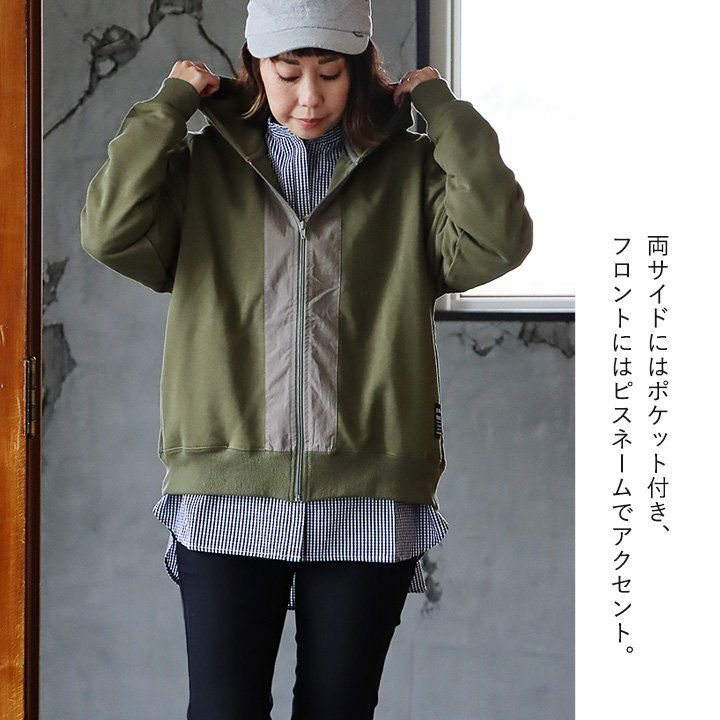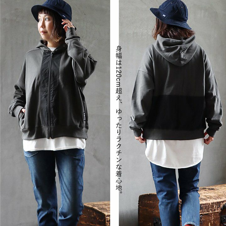 ちょっと違った「定番」。 パーカー 長袖 レディース 異素材切り替え フード付き 配色 コットン 裏毛 大きいサイズ ゆったり カジュアル メンズライク GENTIL ジャンティ