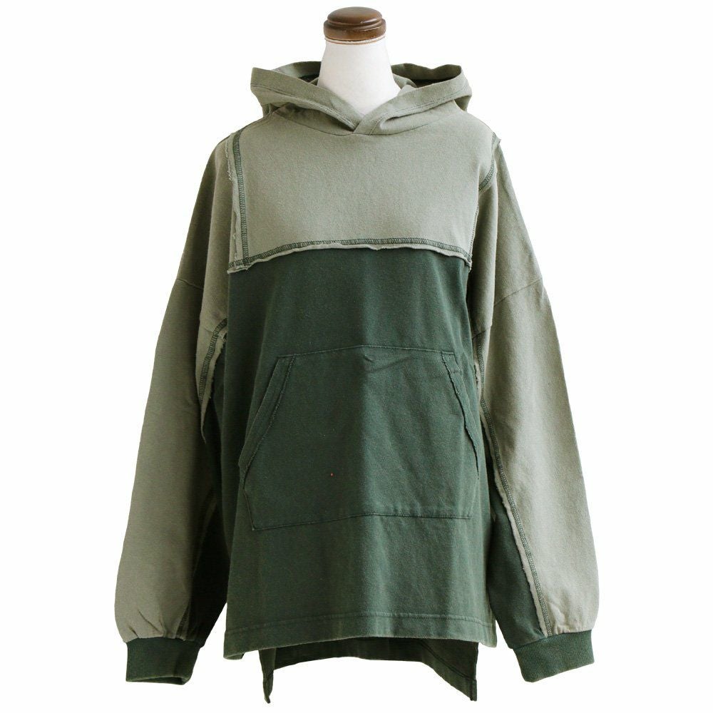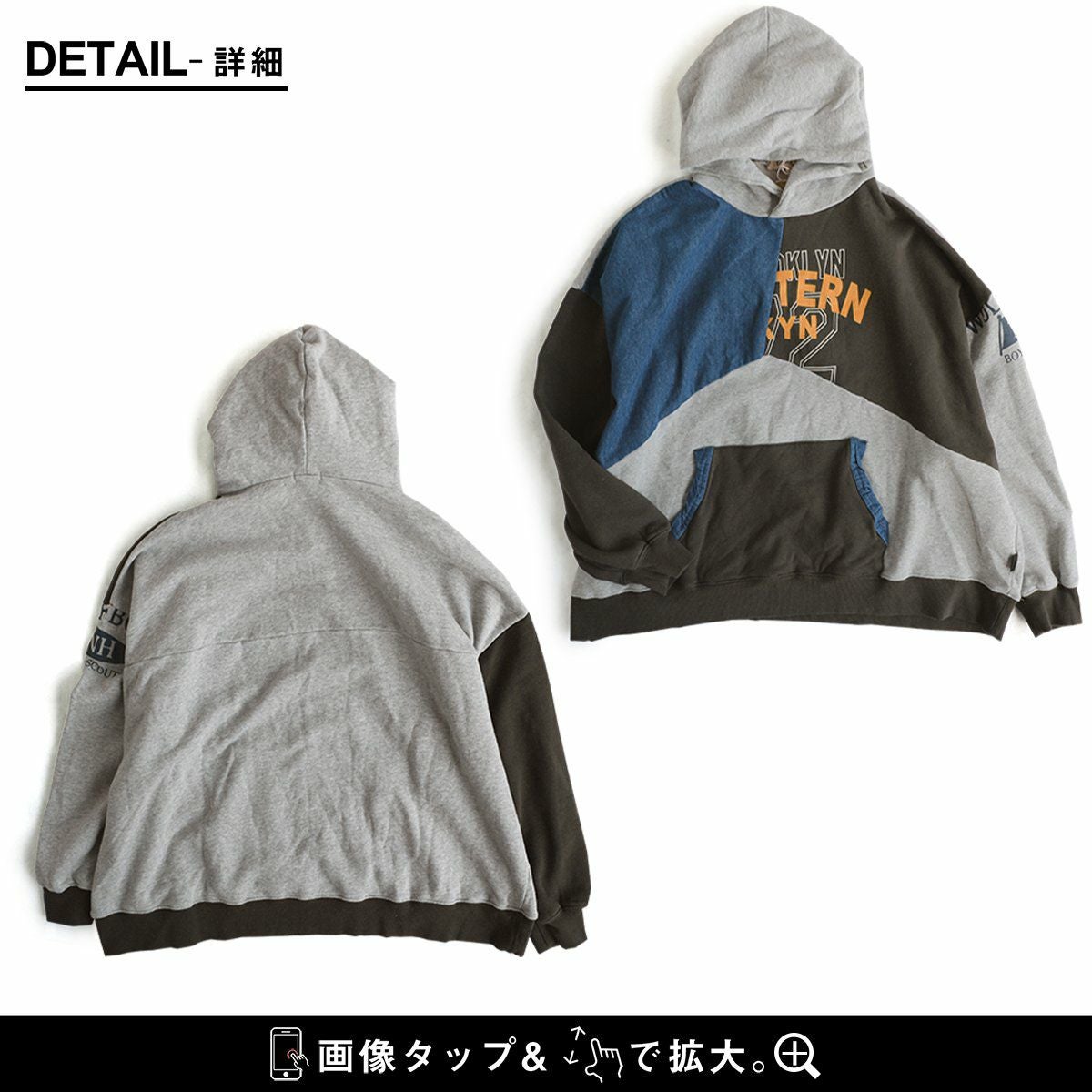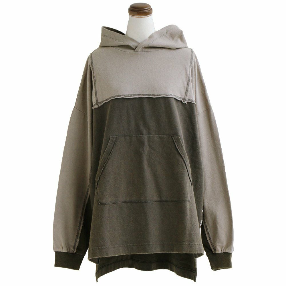 細かさがリアル。 チュニック パーカー 長袖 レディース 着痩せ お尻隠れる ワイドシルエット リメイク風 配色切り替え ステッチ バックプリント 綿100% コットン 裏毛 カジュアル メンズライク GENTIL ジャンティ