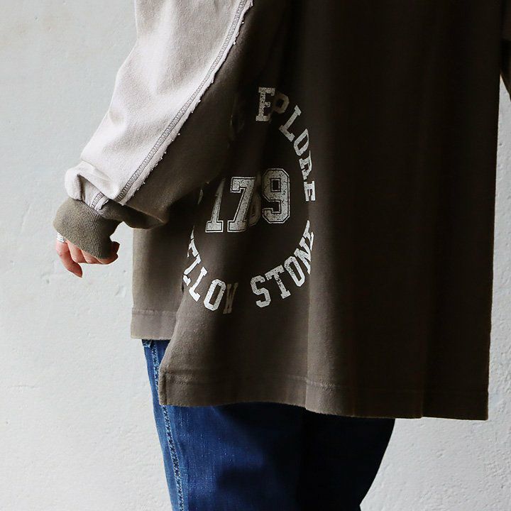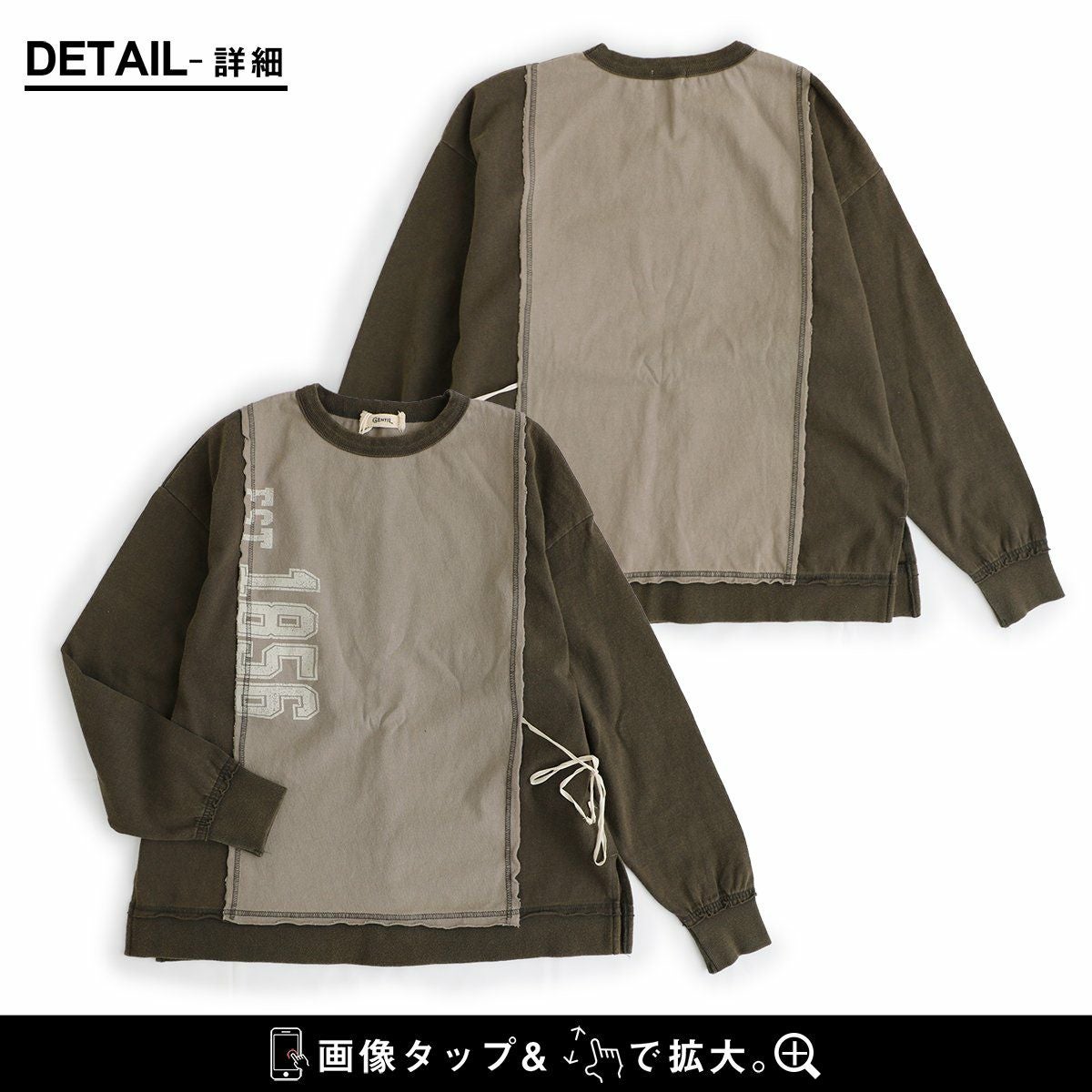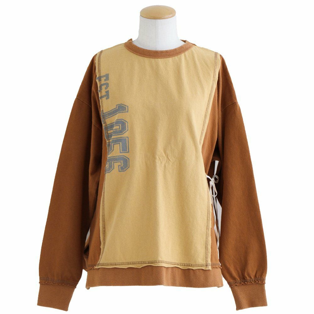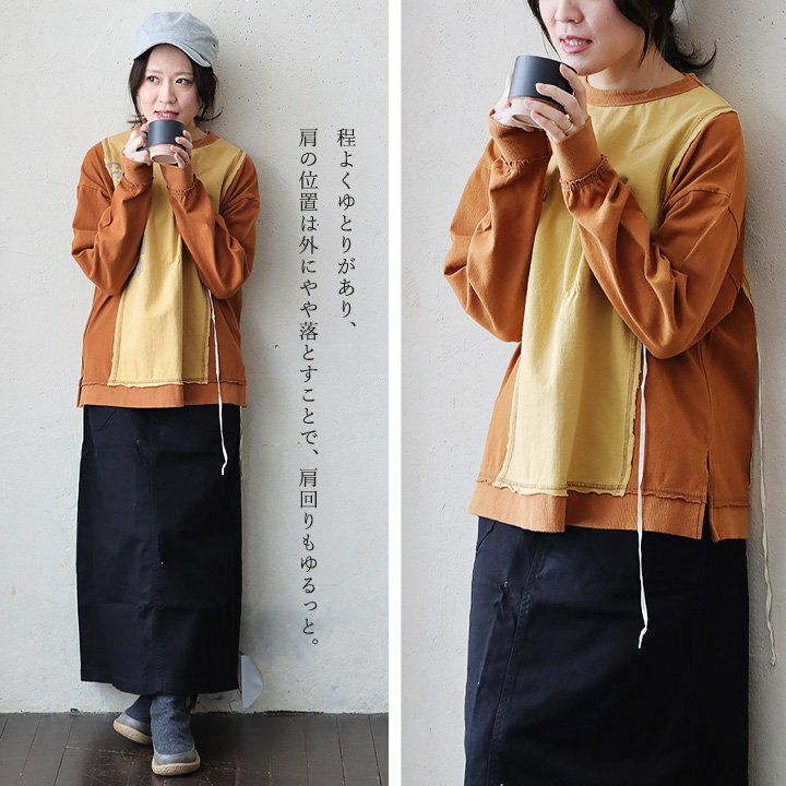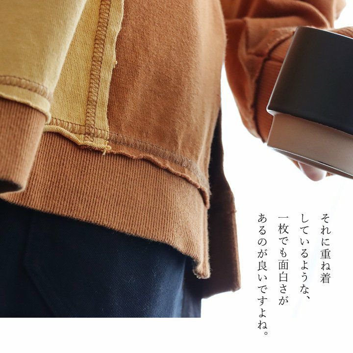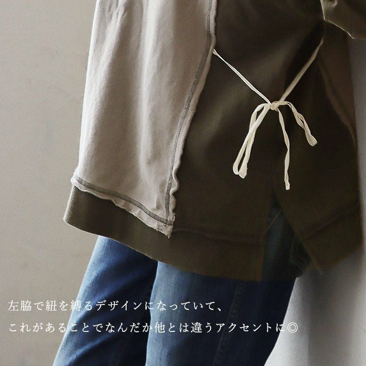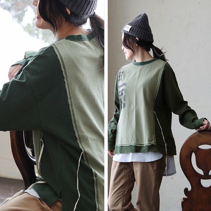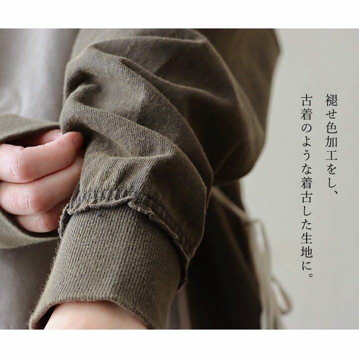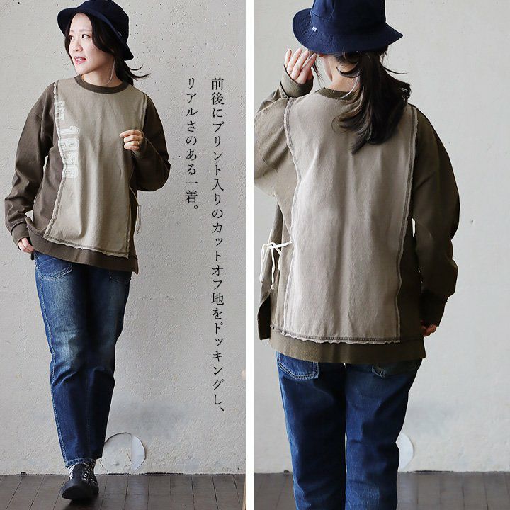 ちょっとした「クセ」が他とは差を付ける。 カットソー プルオーバー 長袖 レディース クルーネック リメイク風 クレイジー 紐付き 褪せ色 コットン 綿100 配色切り替え ゆったり 秋 冬 カジュアル PATY GENTIL ジャンティ