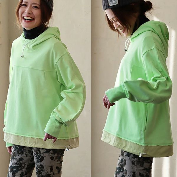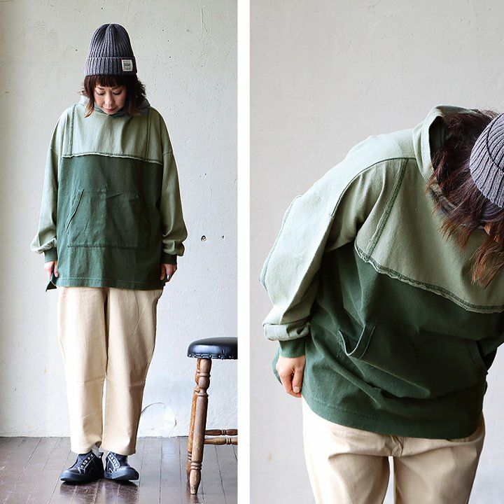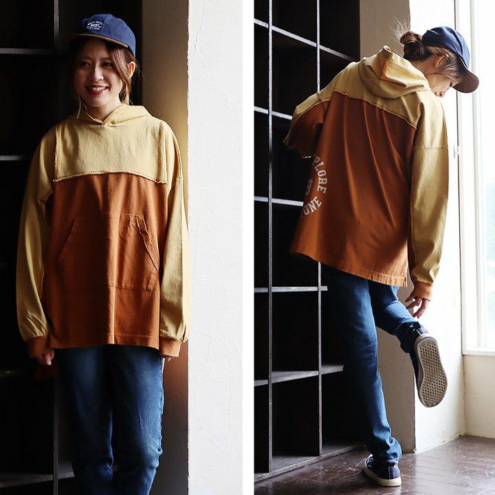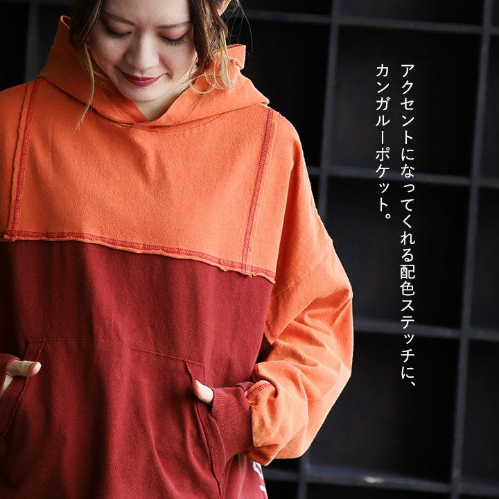 「定番」だからこそ、『違い』で勝負!! パーカー 長袖 プルオーバー ワイド すっきり 着痩せ 裏毛 スウェット 柔らかい 綿100 コットン お尻 隠れ カバー クレイジー レディース ラグラン ポケット リブ袖 色合い カジュアル アメカジ おしゃれ OAR’S GENTIL コラボ パティ