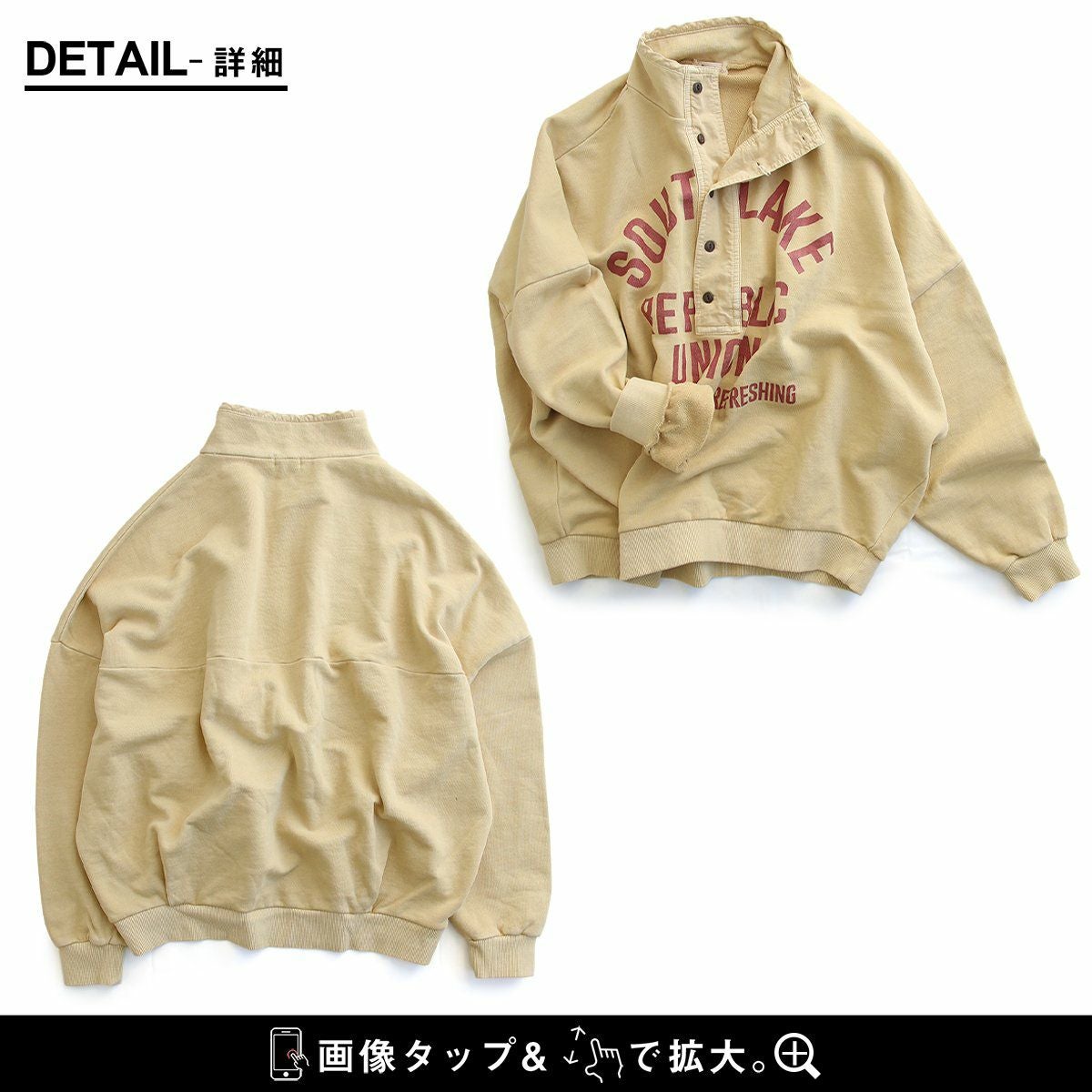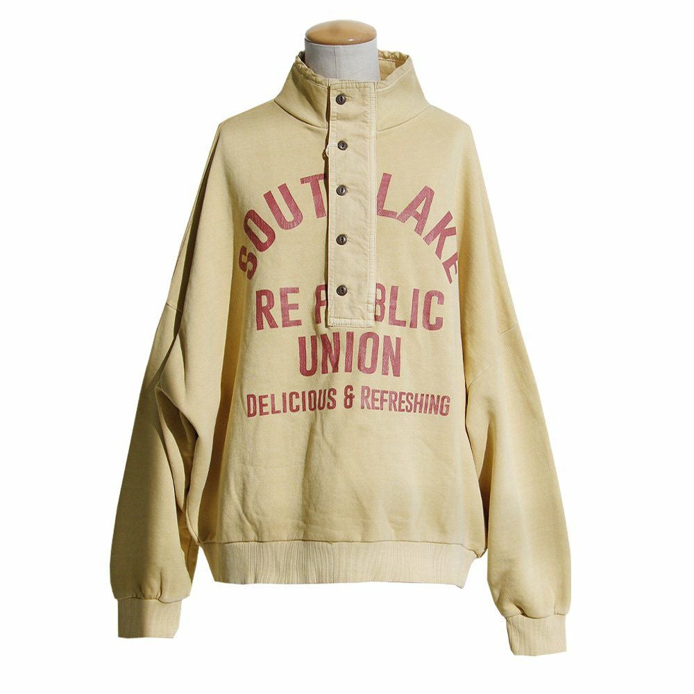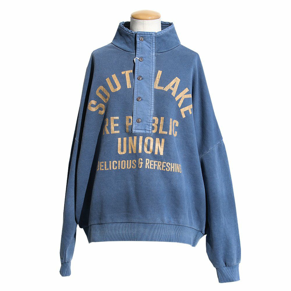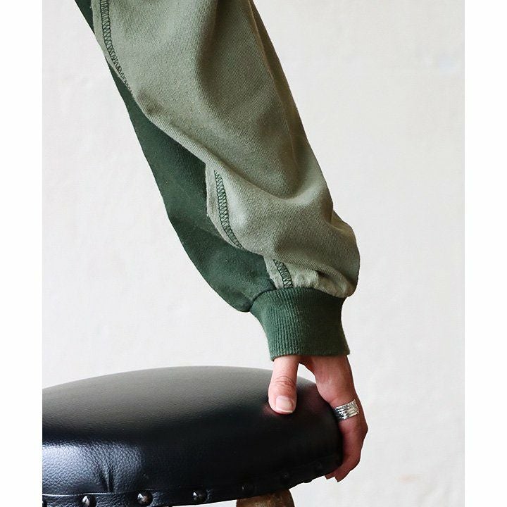 格好良さは、もはやメンズモノ並み。 スウェット プルオーバー レディース ヘンリーネック ハイネック 異素材切り替え コットン 綿100 褪せ色 ピグメント ロゴプリント ゆったり 大きいサイズ ゆったり 体型カバー カジュアル メンズライク PATY パティ GENTIL ジャンティ