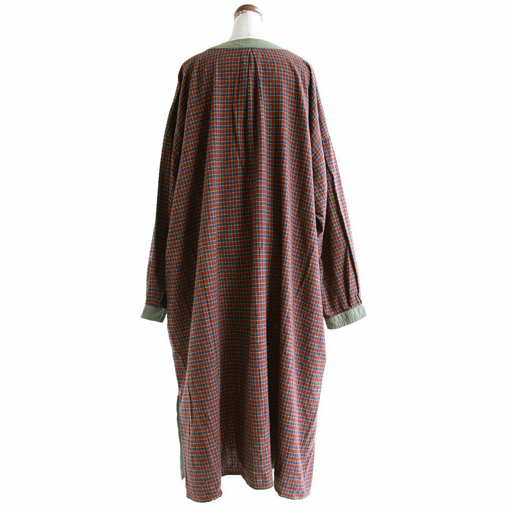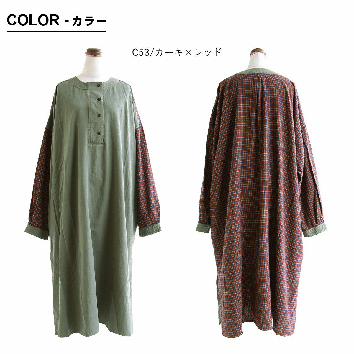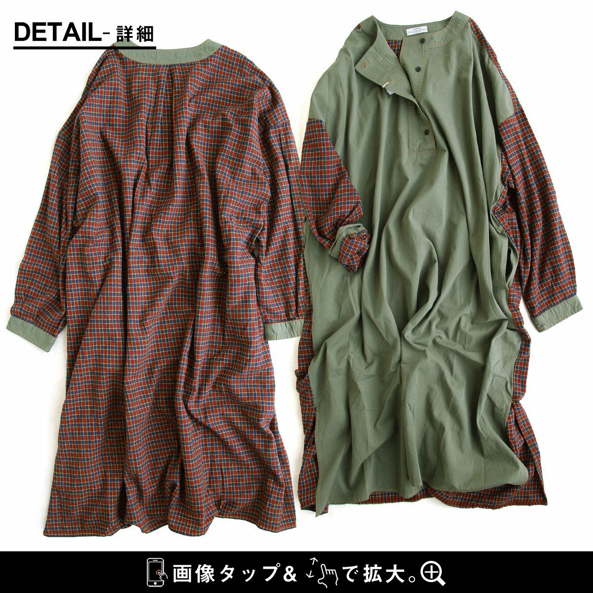大胆っぷりに惹かれます。 ワンピース ワンピ レディース お尻隠れる ヘンリーネック ミリタリー チェック 切り替え 綿100% コットン 体型カバー ゆったり カジュアル GENTIL ジャンティ