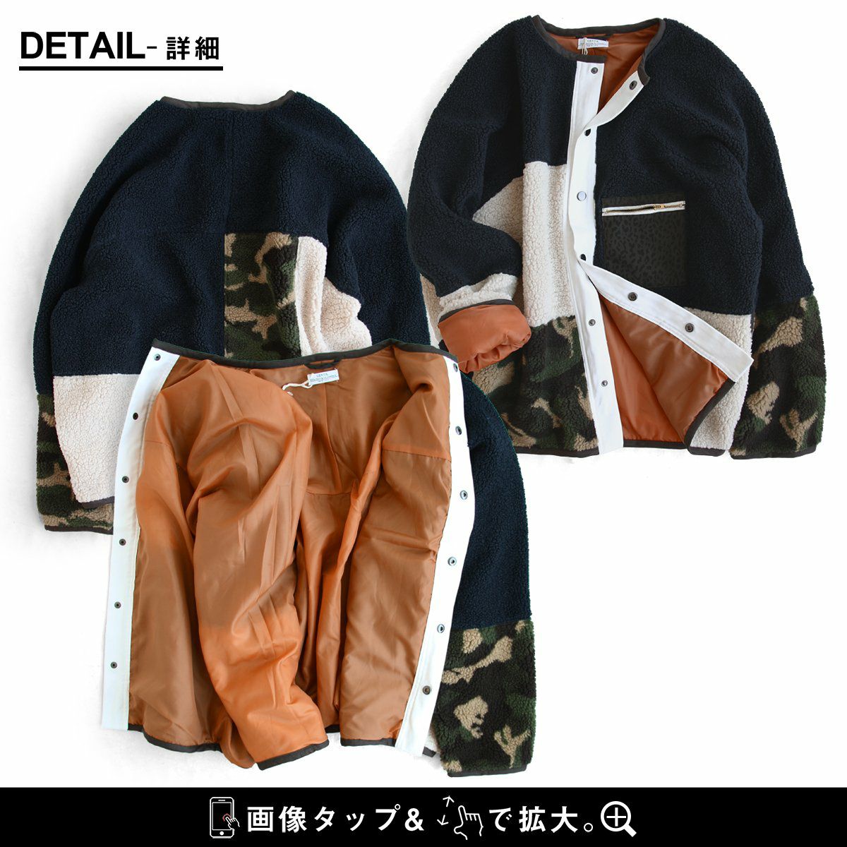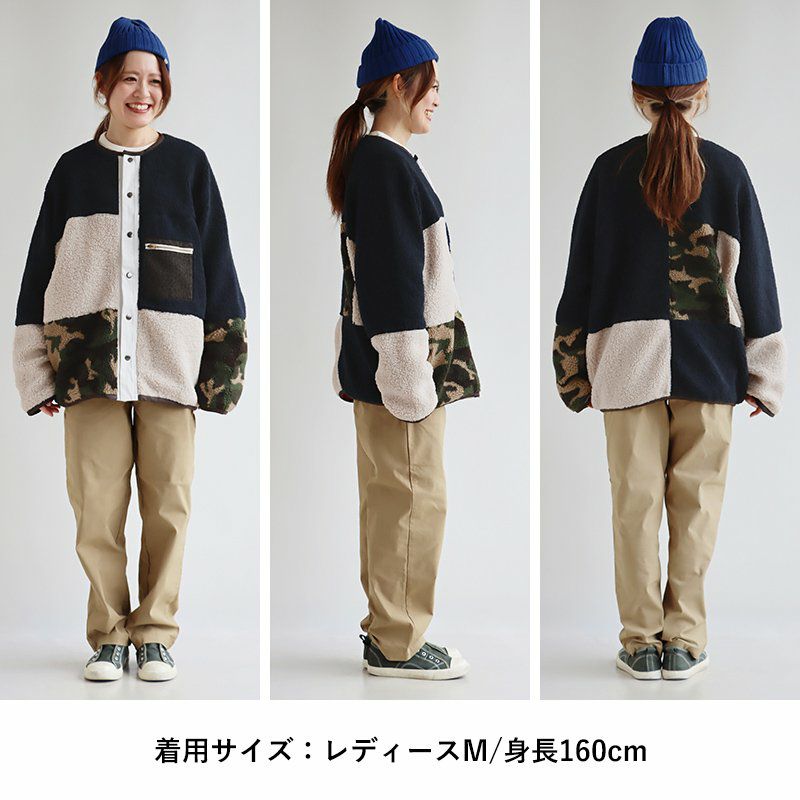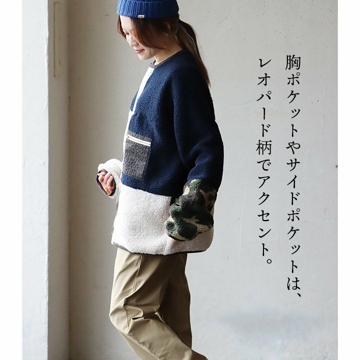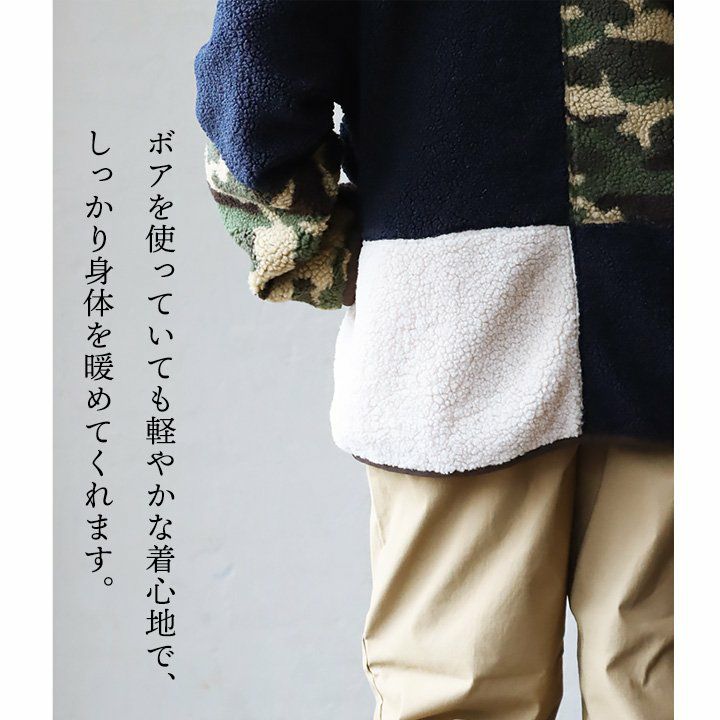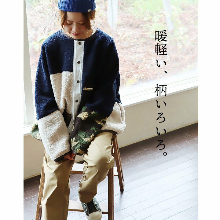 暖軽い、柄いろいろ。 ブルゾン ボアブルゾン レディース ノーカラー 迷彩 カモフラ レオパード 配色切り替え パイピング ポリエステル100% 防寒 暖かい 軽い 秋 冬 カジュアル GENTIL ジャンティ