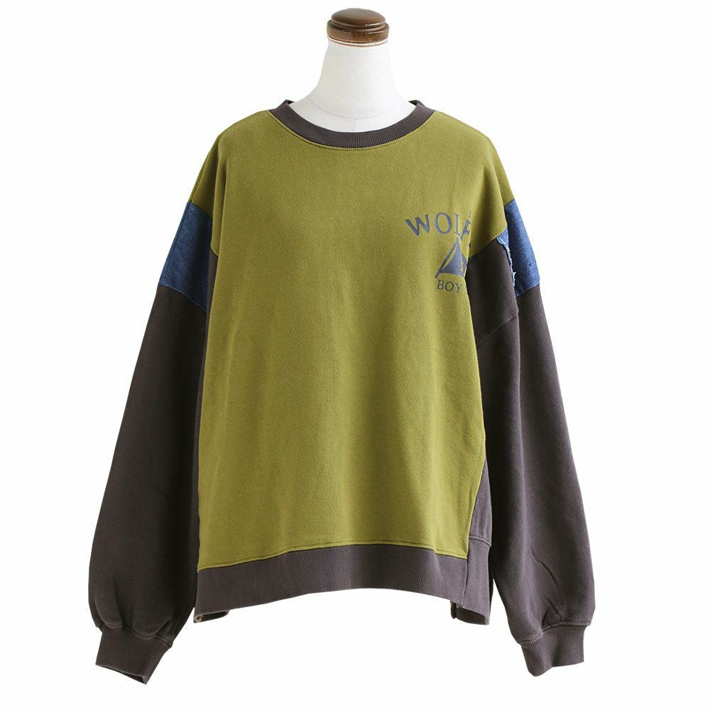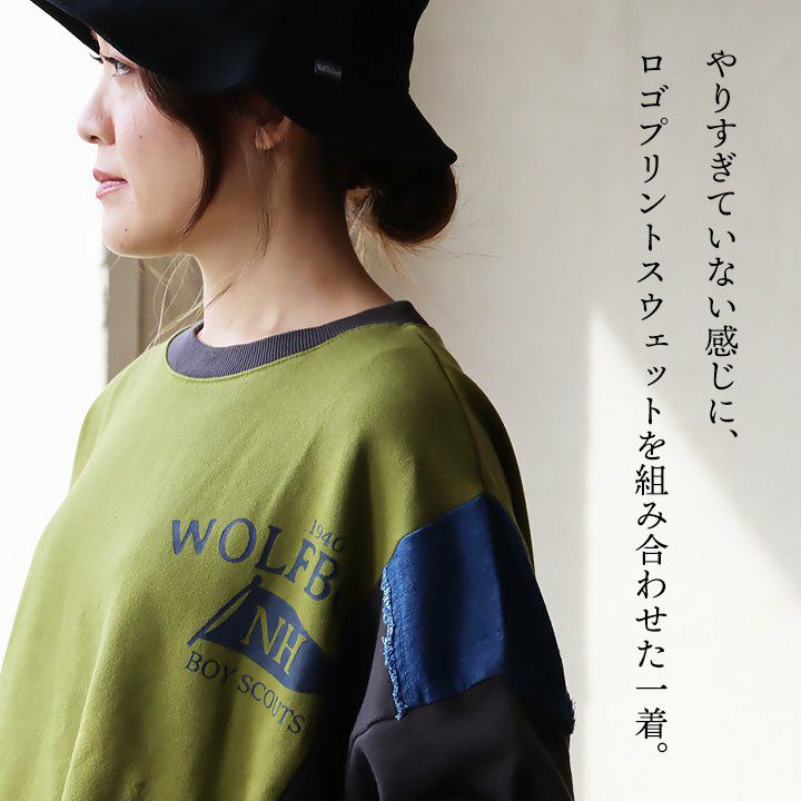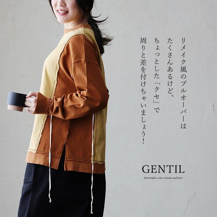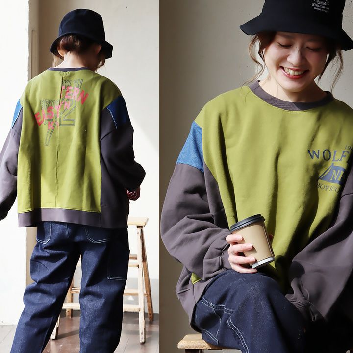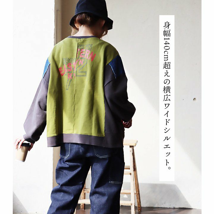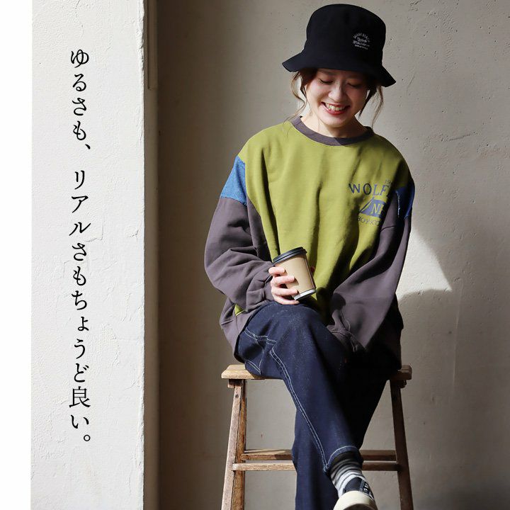 ゆるさも、リアルさもちょうど良い。 スウェット プルオーバー レディース 着痩せ リメイク風 デニム 配色切り替え 綿100% コットン 横広ワイド ゆったり 体型カバー 秋 冬 カジュアル GENTIL ジャンティ