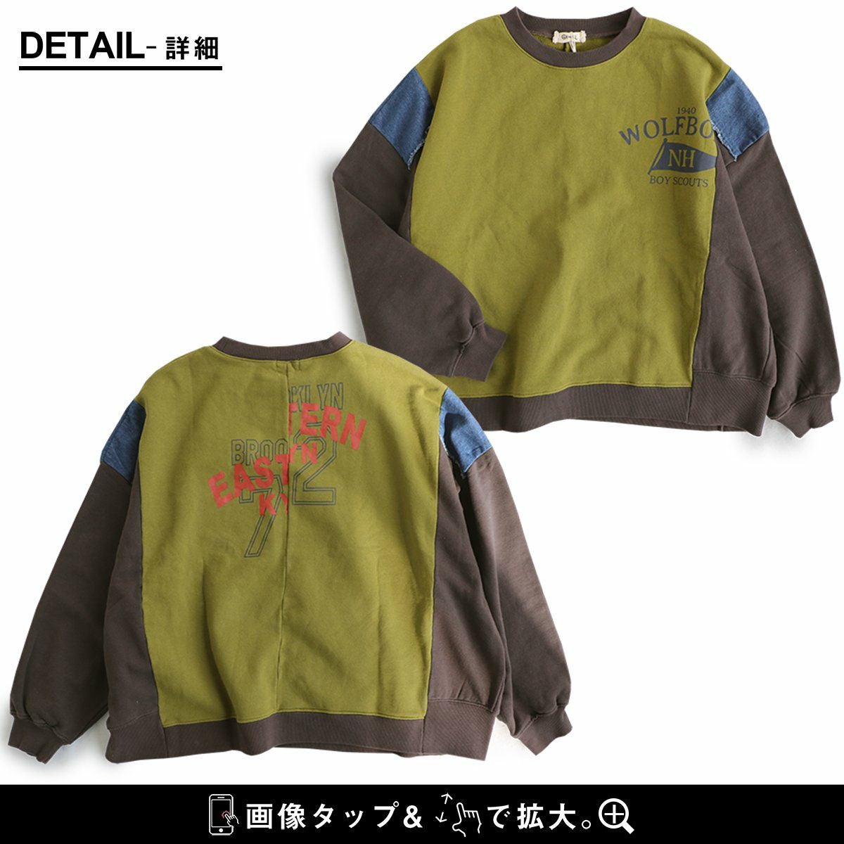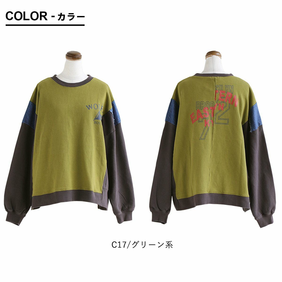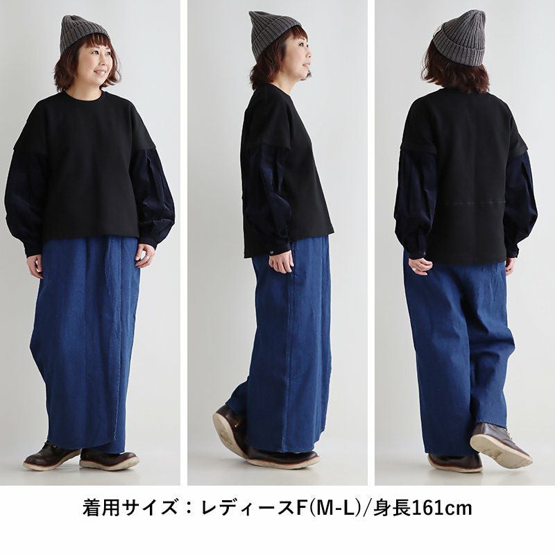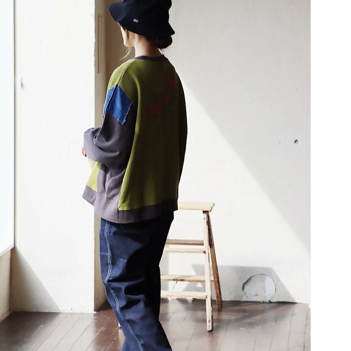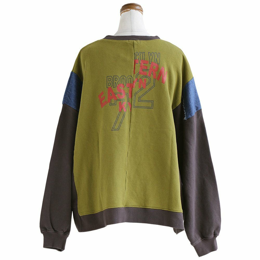 ゆるさも、リアルさもちょうど良い。 スウェット プルオーバー レディース 着痩せ リメイク風 デニム 配色切り替え 綿100% コットン 横広ワイド ゆったり 体型カバー 秋 冬 カジュアル GENTIL ジャンティ