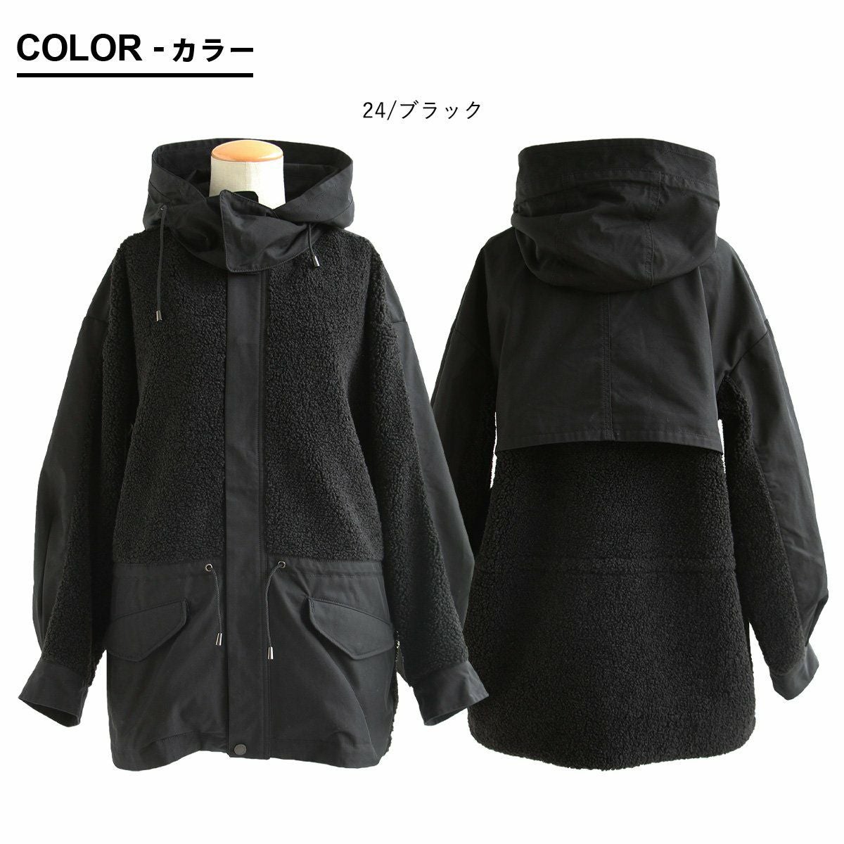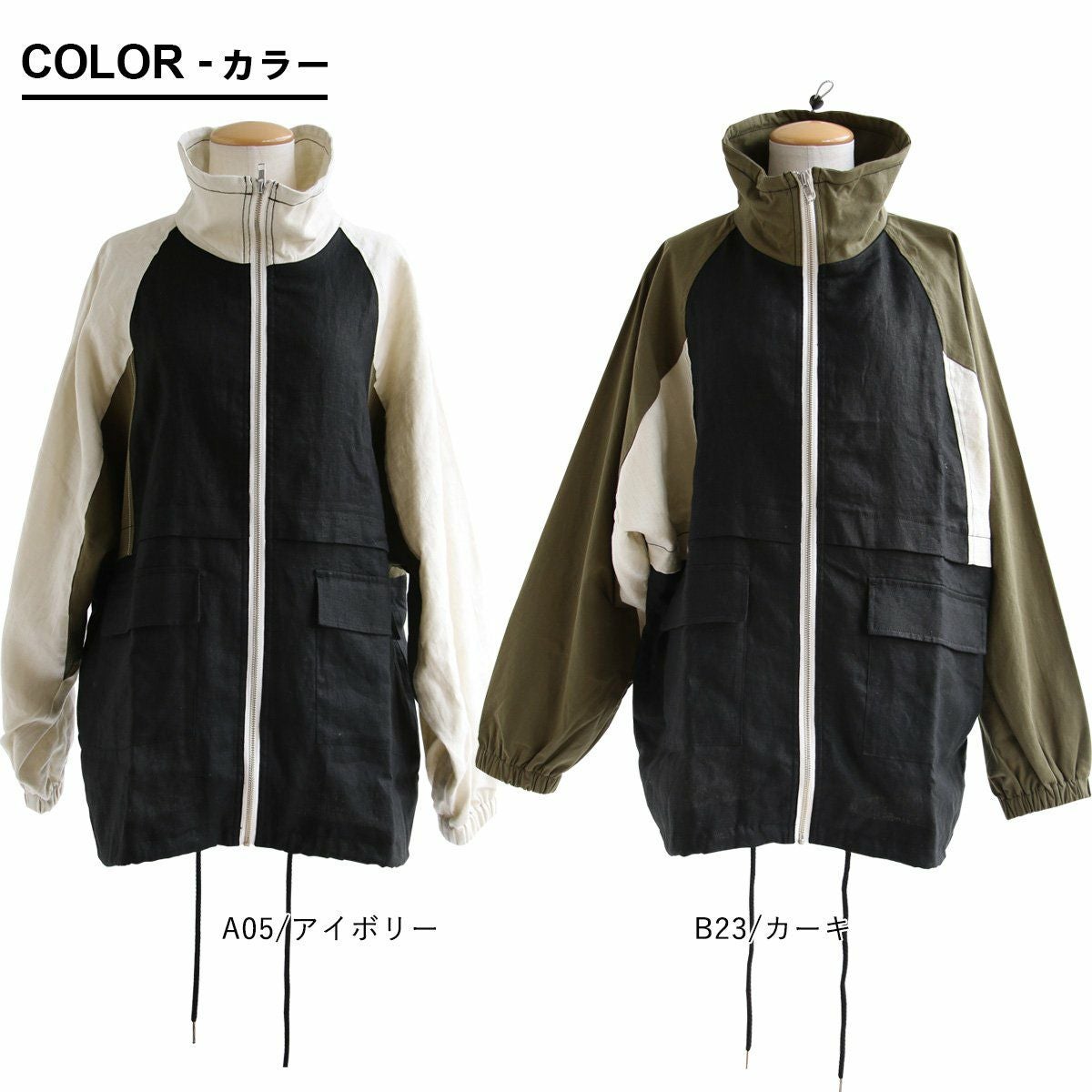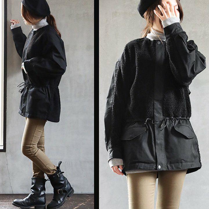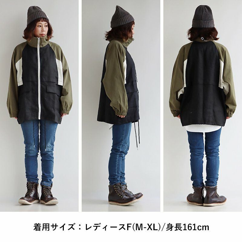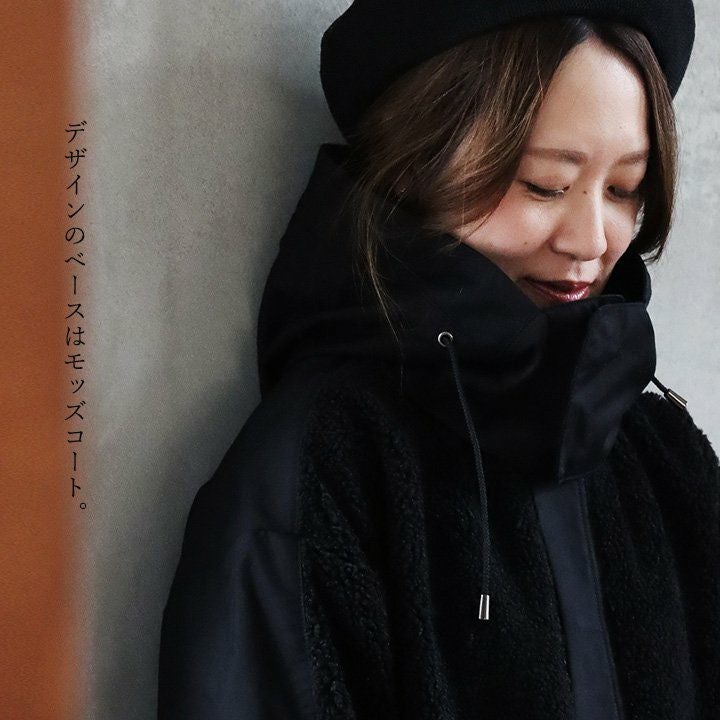 このコートを着たいから、出かけたい。 コート ジャケット レディース ロングコート ハイネック ワイドシルエット 配色 異素材切り替え 袖リブ 裏地付き ゆったり 体型カバー 大きいサイズ 暖かい ミリタリー カジュアル パティ OAR’S×GENTIL