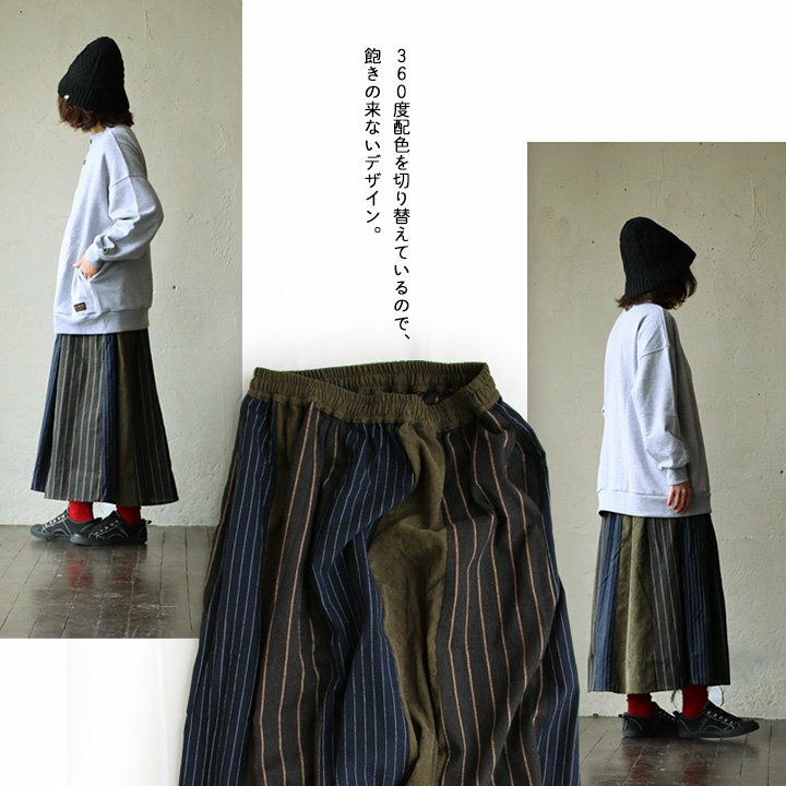 一枚で、インナーで、クレイジーボーダーで差を付けて。 ロンT 長袖 レディース クルーネック ボーダー 重ね着 お尻隠れる 配色切り替え 綿100 コットン ワイドシルエット ゆったり 大きいサイズ カジュアル PATY GENTIL ジャンティ