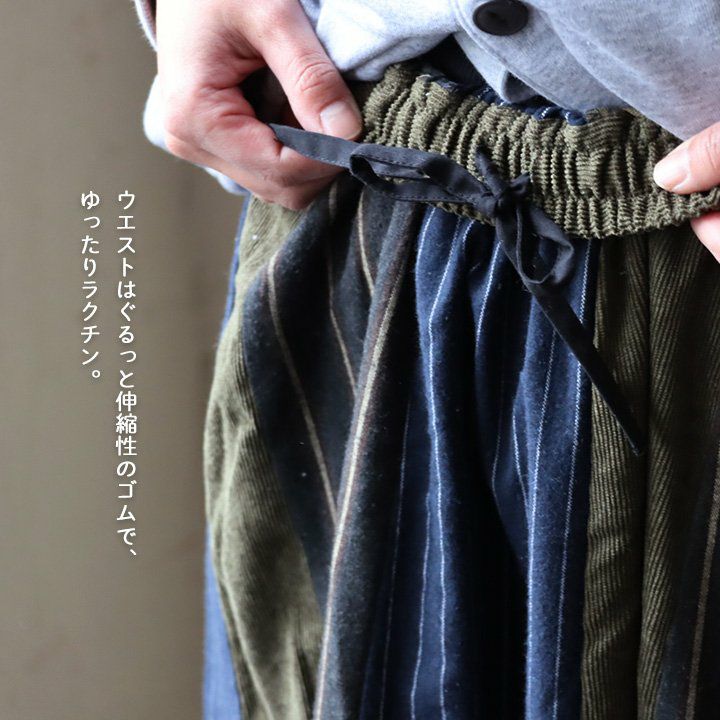 シンプルすぎず、派手すぎず、ちょっとしたアソビを。 パンツ テーパード ストレート イージー レディース 異素材切り替え 配色 ヘリンボーン 綿100% 細見え ウエストゴム ゆったり 大人カジュアル GENTIL ジャンティ