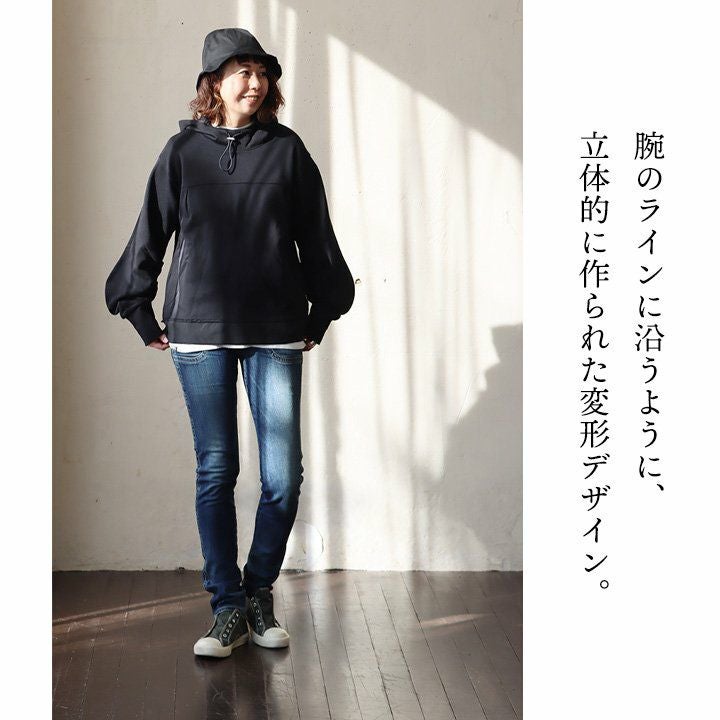 パーカーでも、キレイなシルエット。 Antgauge アントゲージ パーカー プルオーバー レディース 宇宙ネック ハイネック 袖デザイン すっきり 脚長 コットン 無地 キレイ 大人カジュアル PATY
