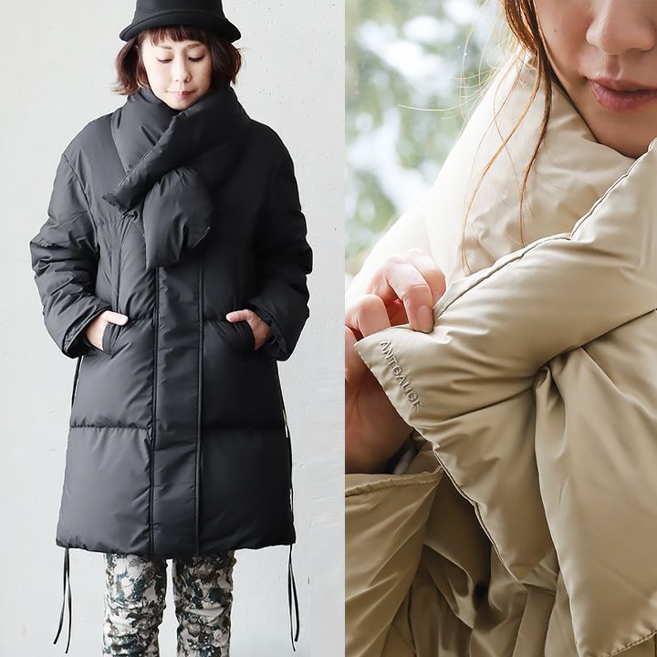 マフラーまで暖かい、ホワイトグースダウンジャケット。 Antgauge アントゲージ ダウン ジャケット ダウンジャケット レディース マフラー 取り外し可能 撥水加工 ホワイトグース 軽い 暖かい お尻 隠れる 細見え 冬