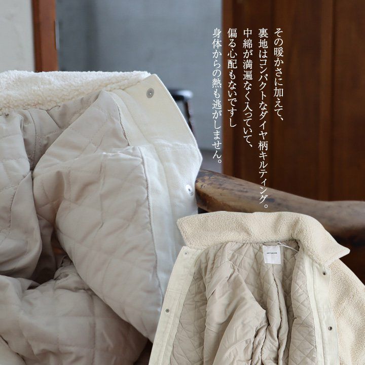 暖かさとアソビの効いた、キルティングコート。 Antgauge アウターコート キルティングコート ロング丈 レディース お尻隠れる 着痩せ 防寒 防風 薄中綿 キルティング フリース 暖かい すっきり 大きいサイズ 大人カジュアル アントゲージ