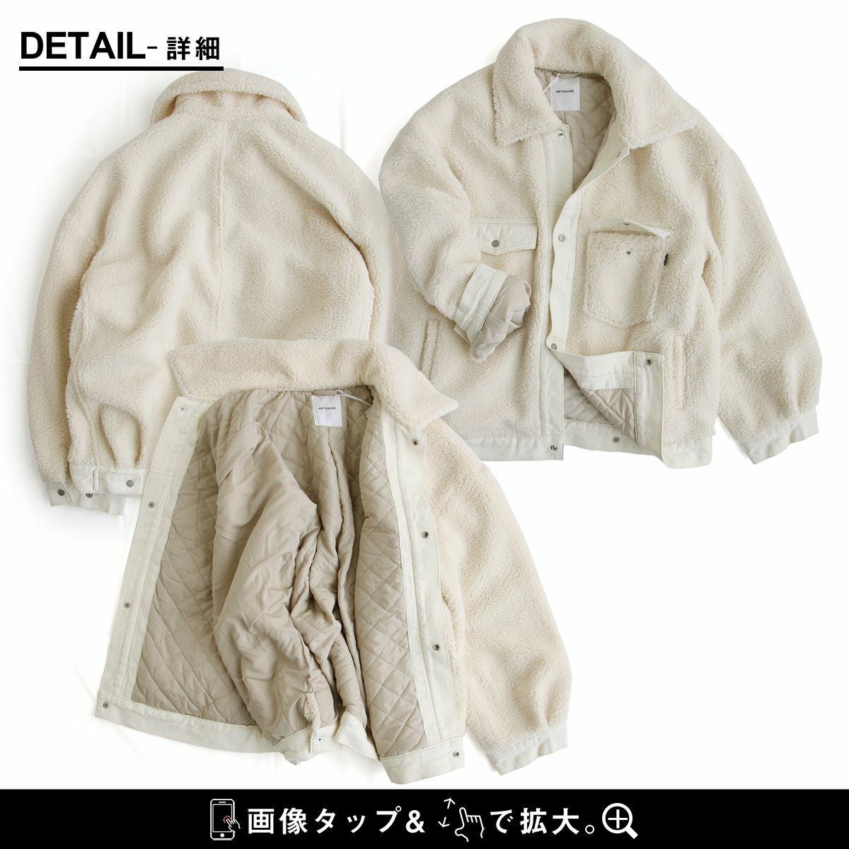 周りとかぶらず、カッコイイ「ボアアウター」。 Antgauge アントゲージ ジャケット アウター ボアパーカー レディース ハイネックフード 取り外せる ボア 暖かい 防寒 防水 ゆったり 体型カバー 秋 冬 カジュアル パティ