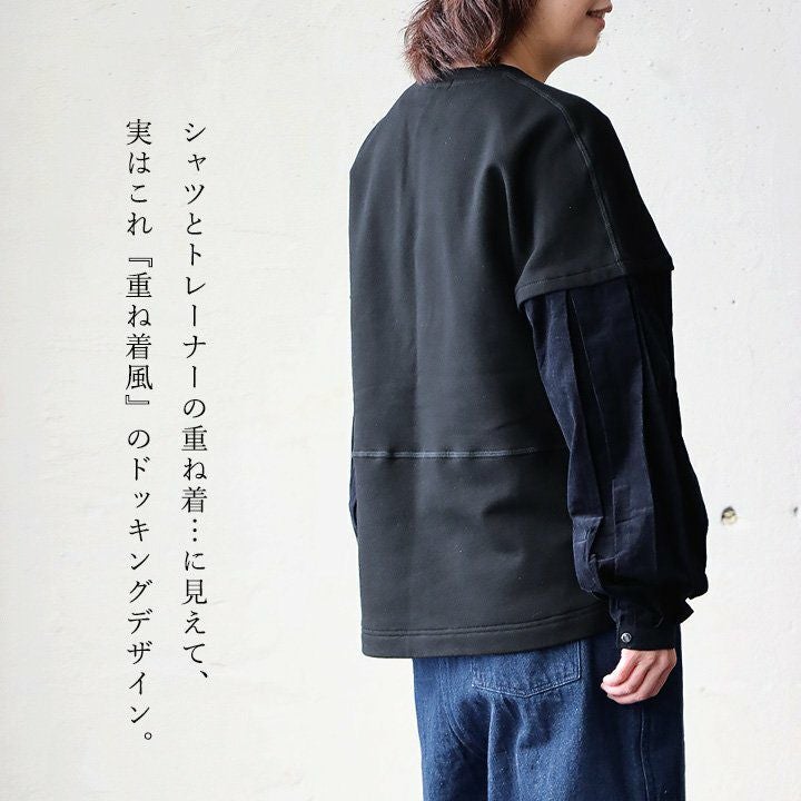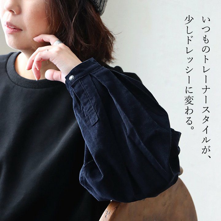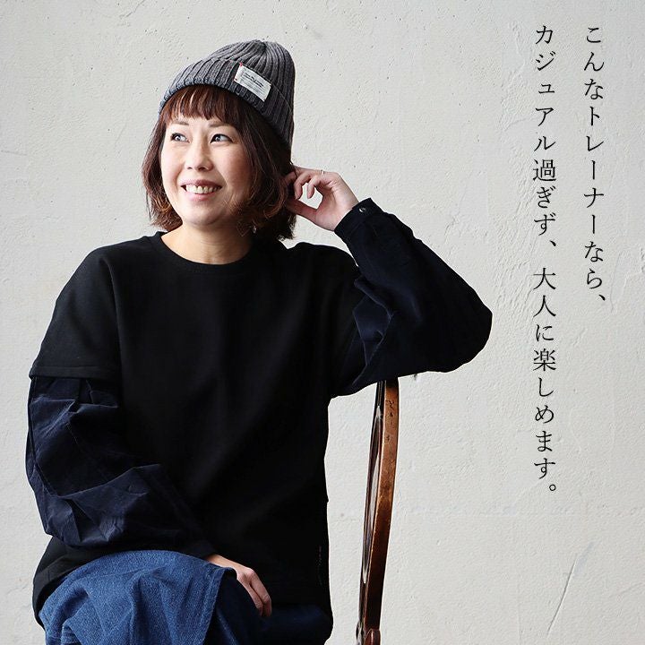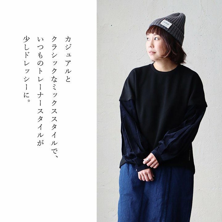 いつものトレーナースタイルが、少しドレッシーに変わる。 Antgauge アントゲージ トレーナー プルオーバー レディース スウェット 裏起毛 重ね着風 袖切り替え 異素材 コーデュロイ シャツ 無地 ドロップショルダー 柔らかい 軽い 秋 冬