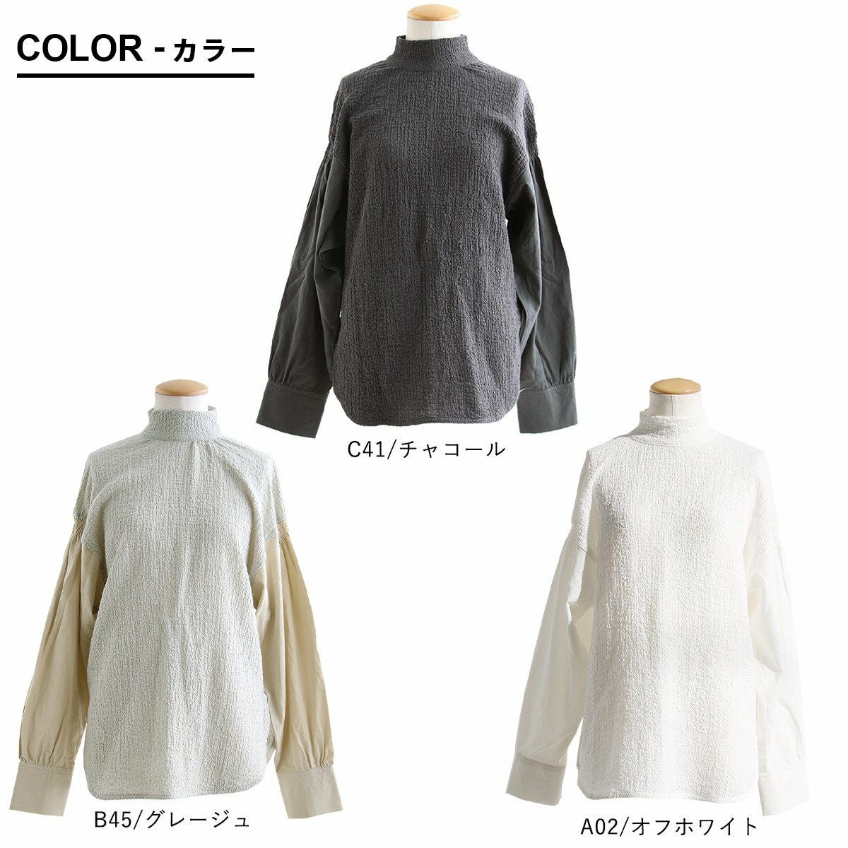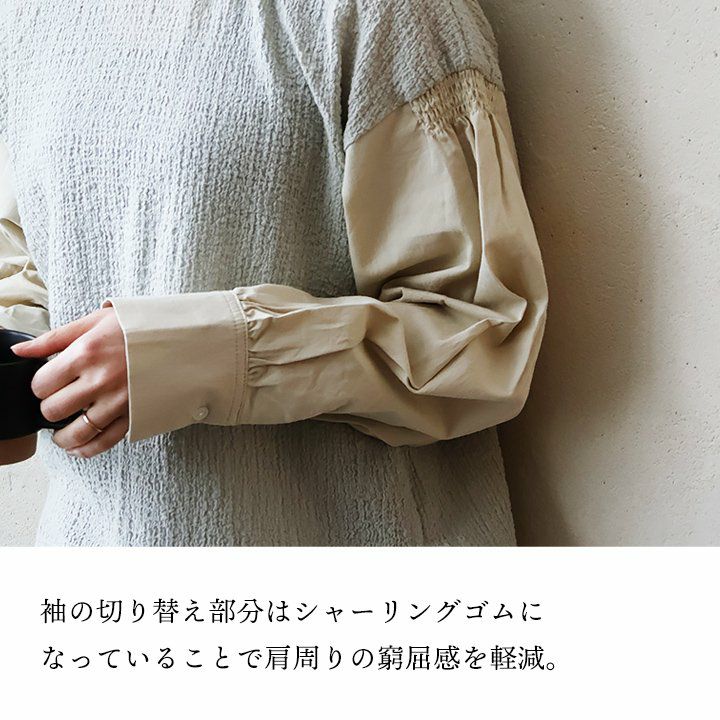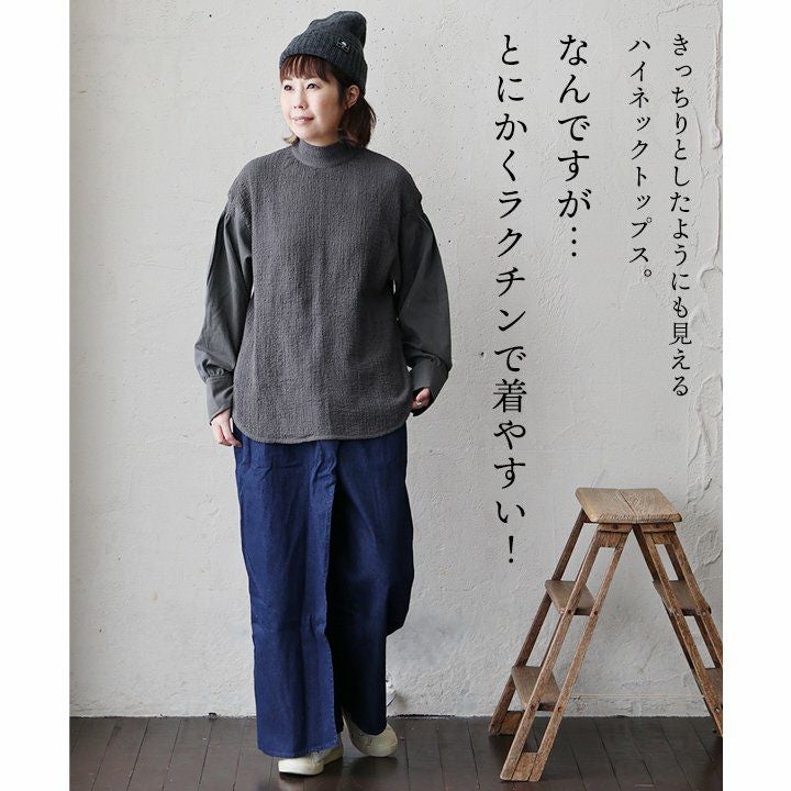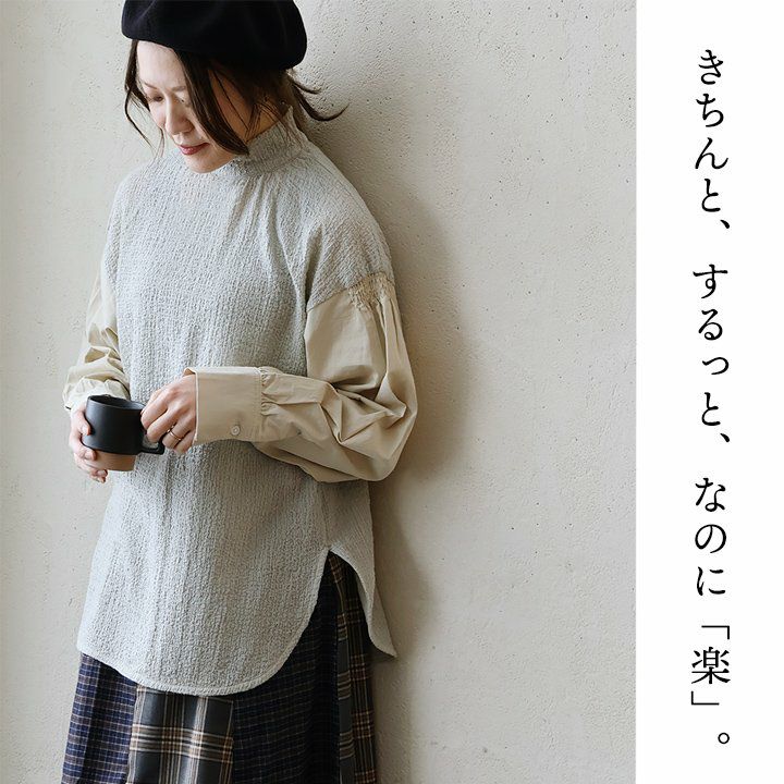 きちんと、するっと、なのに「楽」。 プルオーバー 長袖 レディース ハイネック 異素材切り替え コットン 綿100 軽い 伸縮性 動きやすい すっきり カジュアル PATY パティ GENTIL ジャンティ