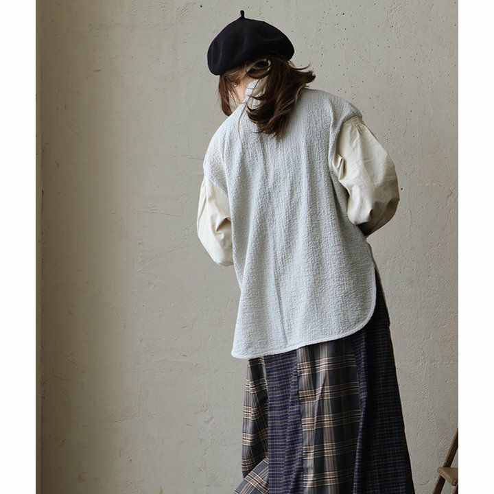 ゆるいのに甘くなく、着るだけで重ね着上手になる、着痩せベスト。 ベスト プルオーバー レディース 大きいサイズ 裏毛 スウェット ピグメント クルーネック 切り替え お尻隠れる ワイド すっきり 着痩せ 重ね着 ドロップショルダー 落ち感 柔らかい 軽い カジュアル PATY パティ OAR’S×GENTIL オールズ×ジャンティ