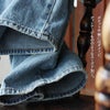 【客観的コメント】裾は地面に少し擦れるくらいの丈の長さです。バランスの良いシルエットで穿けていましたよ。