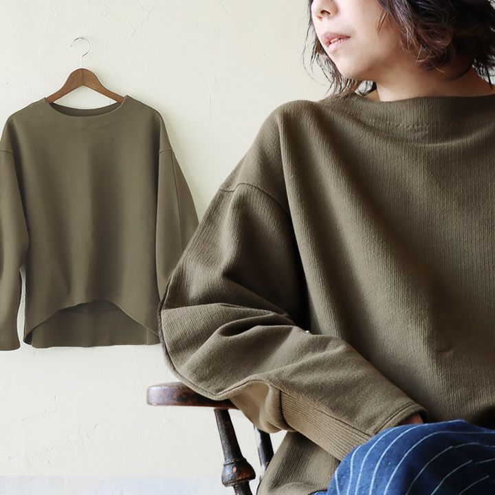 ちょっとした「違い」が、すっきり、綺麗。 Johnbull ジョンブル スウェット プルオーバー 長袖 レディース クルーネック 綿100 コットン 裏毛 無地 厚手 しっかり生地 伸縮性 リブ 体型カバー すっきり 大人カジュアル 春 秋 冬 パティ