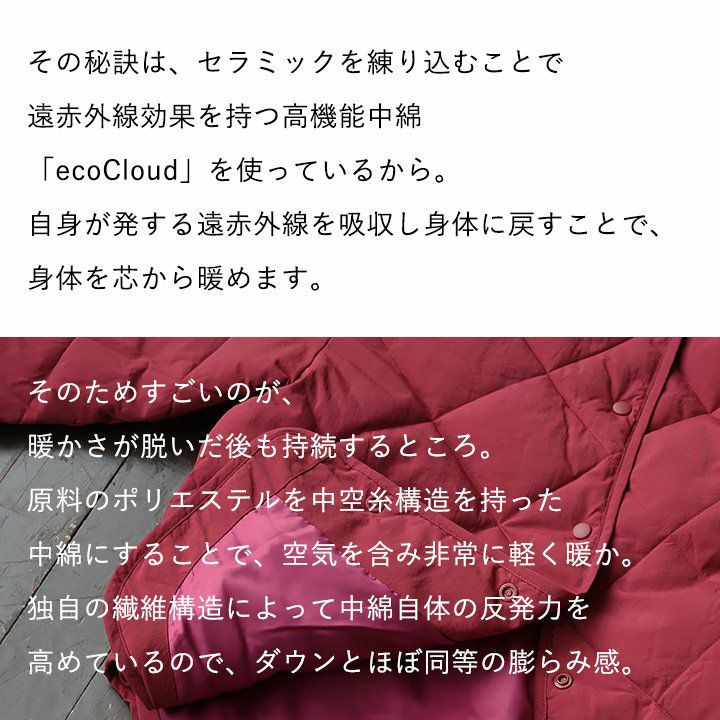 他の画像を見る 暖かさが「脱いだ後」も持続する。 Johnbull ジョンブル ジャケット 中綿 キルティング レディース キルティングジャケット 高機能中綿 遠赤外線効果 エコクラウド スタンドネック ハイネック オーバーサイズ ワイド 2~3日でお届け 販売価格 ¥ 27,500 税込 在庫切れ カートに入れる お気に入りに登録する