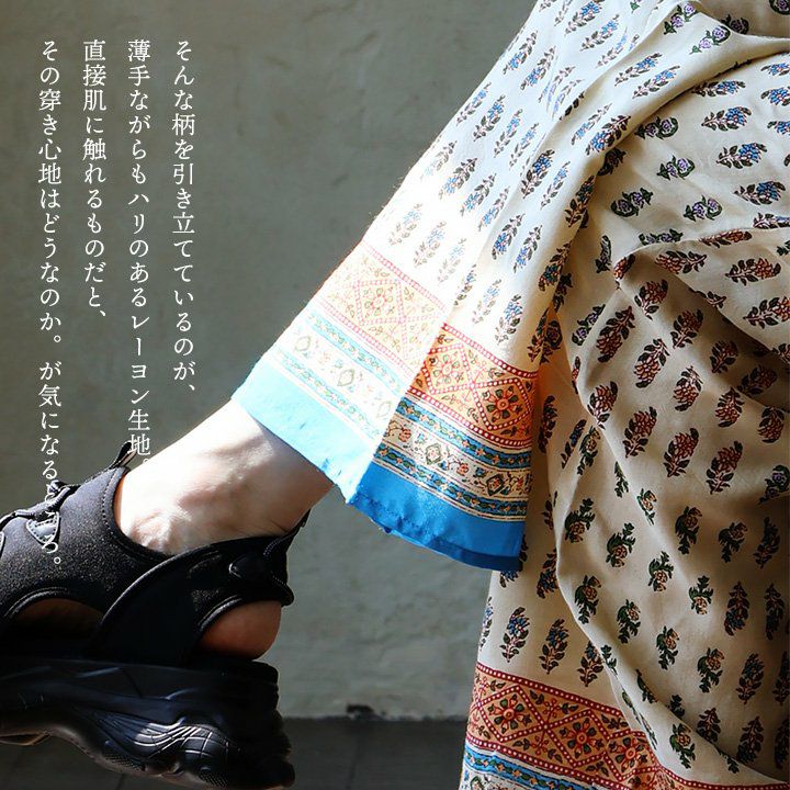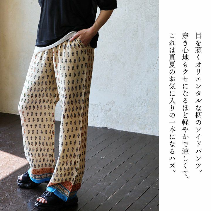 他の画像を見る 目を惹くオリエンタルな雰囲気と、軽やかで涼しい穿き心地。 Johnbull ジョンブル パンツ ワイド ストレート レディース インド パネル レトロ 総柄 レーヨン 薄手 裏地付き 軽い 涼しい ウエストゴム ゆったり 体型カバー 大きいサイズ カジュアル ヴィンテージ 夏 夏服 パティ 2~3日でお届け 販売価格 ¥ 18,700 税込 在庫切れ 詳細を見る お気に入りに登録する