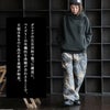 【モデルコメント】骨盤で穿きました。ゆったりとした穿き心地です。中は、何を合わせても問題はありませんね。 【客観的コメント】裾は地面に少し擦れるくらいの丈の長さです。大きめな感じで穿きたいならって感じのサイジングでしたね。