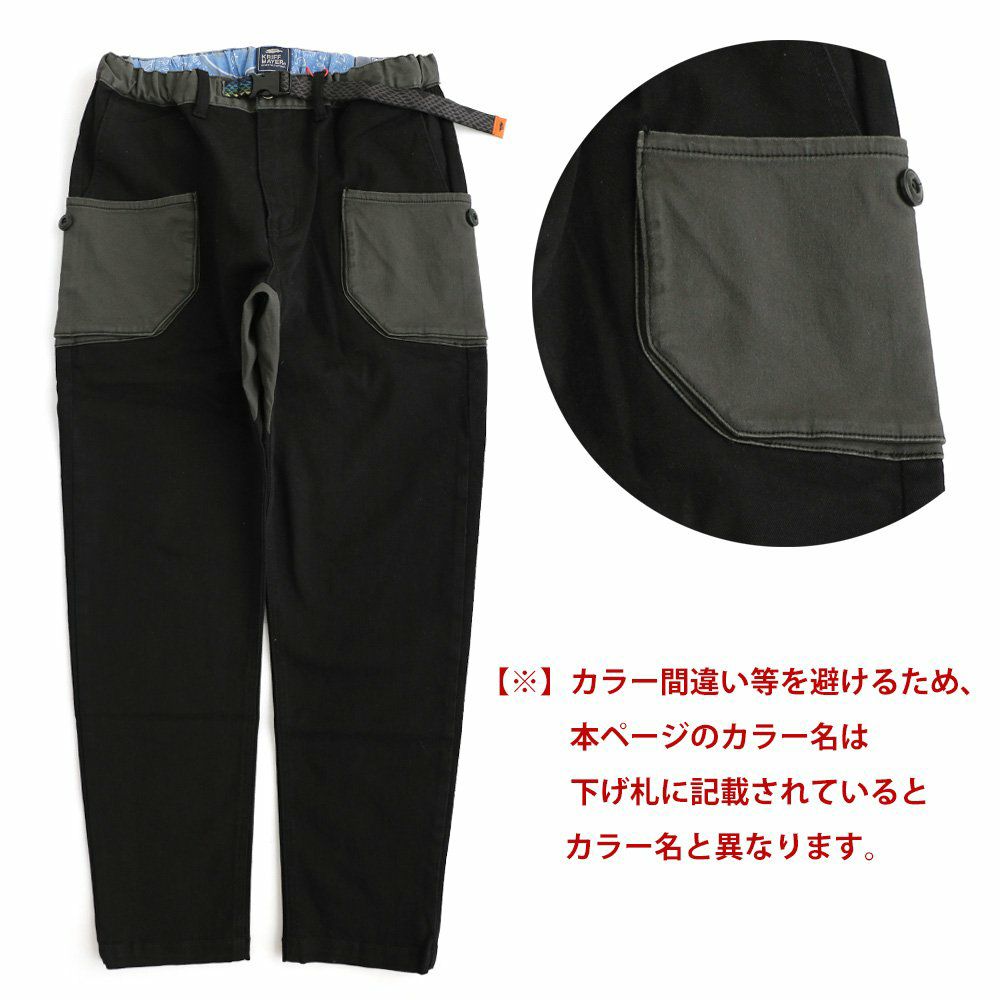 毎日穿くなら「しっかり伸びて、バッチリ丈夫」。 KRIFF MAYER クリフメイヤー クライミングパンツ メンズ レディース ストレッチ 動きやすい しっかり 丈夫 ウエストゴム ウェイビングベルト テーパード デニム 裾裏アクセント アメカジ カジュアル メンズライク パティ