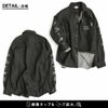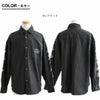 :さらっと羽織りやすく、袖で遊んじゃってます。 デニムシャツ 長袖 ライトアウター メンズ レディース 袖刺繍 胸ポケット コットン100% 綿 ブラック 大きいサイズ 体型カバー カジュアル PATY パティ
