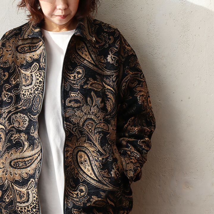 見惚れるほど細やかで、シックな雰囲気。 ジャケット 長袖 メンズ レディース ペイズリー 総柄 ゴブラン 刺繍 ポリエステル しっかり生地 裏地付き ハリ タフ ゆったり 大きいサイズ カジュアル ヴィンテージ 秋 冬 パティ