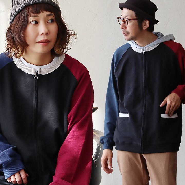 スウェットよりも薄く、軽やかに。 gym master ジムマスター カーディガン カーデ プルオーバー 長袖 メンズ レディース 配色切り替え クルーネック 綿100% コットン 伸縮性 薄手 軽い ポケット ゆったり すっきり カジュアル